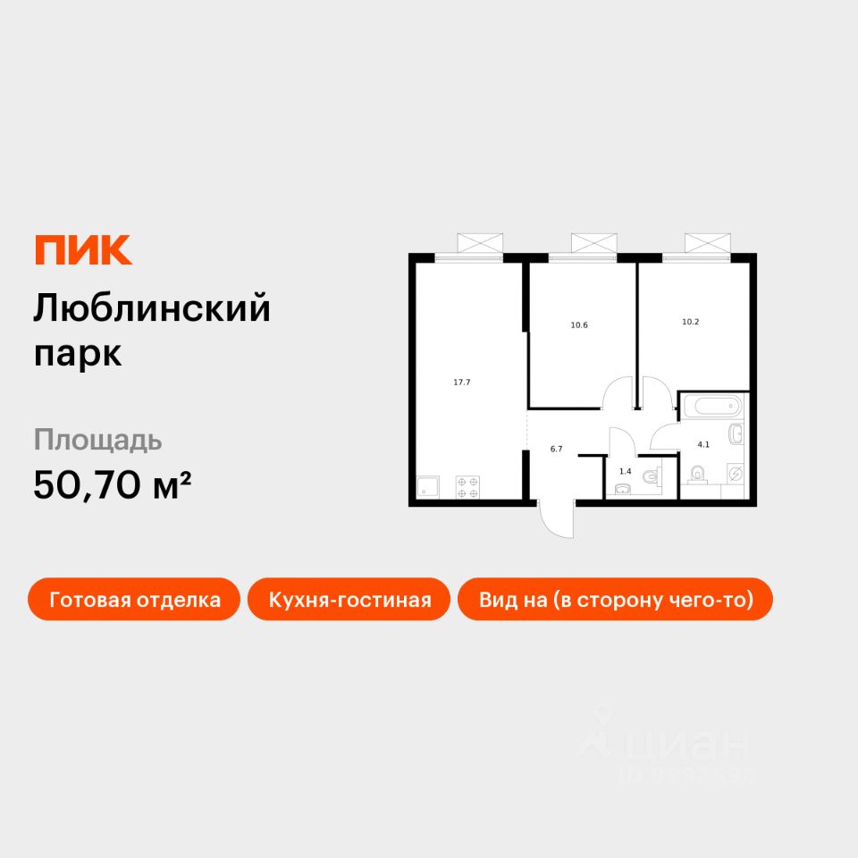 Продаётся 2-комн. квартира площадью 50,7 кв.м на 13 этаже 16 этажного дома (Корпус 12, Секция 7) проекта ПИК Люблинский парк. Светлый просторный подъезд на уровне земли, функциональная планировка, большие окна, c отделкой. Жилой квартал ''Люблинский парк'' расположен на юго-востоке Москвы, в шаговой доступности от станции ''Братиславская''. На метро до центра ехать всего 30 минут. Также недалеко станция МЦД ''Перерва'', от которой можно уехать в Москву или в область. В проекте 54 жилых корпуса, три школы, семь детских садов, поликлиника. В районе есть все условия для комфортной жизни: торговые центры, школы, детские сады, поликлиники и спортивные центры. Рядом находятся усадьба Люблино, скверы и парки. Различные магазины, кафе и другие сервисы откроются на первых этажах, а на подземных будут паркинги с удобной навигацией. В зелёных дворах без автомобилей мы построим детские площадки и места для отдыха. А ещё ''Люблинский парк'' стал третьим проектом ПИК с большой игровой площадкой PlayHub, которая уже открылась между 1-м и 2-м блоками на безопасном расстоянии от дороги. Новое детское пространство ''Остров'' воплощает идею бесконечной игры. Ландшафт площадки — это ещё и игровой элемент, который помогает детям придумывать множество самых разнообразных игр. Здесь интересно детям разного возраста — от малышей до подростков. Жителям квартала Люблинский парк и их друзьям доступен проект ПИКСПОРТ — это бесплатные занятия с профессиональными тренерами. Тренировки по разным направлениям, например йога, фитнес, бег, воркаут, проходят как в группе на улице рядом с домом, так и онлайн. Артикул 656999 (Застройщик ООО СЗ ''Люблино Девелопмент'')
