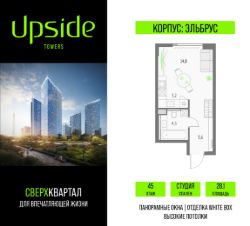 Продаётся студия площадью 28.1 кв.м на 45 этаже 55 этажного корпуса Эльбрус в квартале небоскребов ''Апсайд Тауэрс'', в квартире предчистовая отделка, c видом на БЦ Останкино, ботанический сад. Номер квартиры А4506.Апсайд Тауэрс - технологичный квартал строится в динамично развивающемся Бутырском районе, в 3 мин. от метро, в 5 мин. от ТТК. На территории 7 га возводится 5 высотных башен от 19 до 58 этажей, названных в честь главных вершин земли. Квартиры с панорамными окнами в пол, высокими потолками и современными инженерными решениями. Благоустроенная зеленая территория включает: приватные дворы, природный комплекс, прогулочный бульвар, ландшафтный парк 2,5 га с сенсорным садом и многофункциональными игровыми и спортивными площадками. Большое внимание в проекте уделяется созданию социальной инфраструктуры. Более 2000 кв.м. отдано под Апсайд Клуб закрытый клуб, уникальное пространство для общения и развития жителей квартала, включая расслабляющую атмосферу, джакузи, сауну, залы для релаксации и йоги доступное жителям Апсайд Тауэрс, всесезонное барбекю-патио, лаундж зону с камином и роялем, многофункциональные игровые пространства, домашний кинотеатр, коворкинг и переговорные. В башнях откроются смотровые террасы для резидентов с панорамными видами на город, парки, Останкинскую башню, ВДНХ, Ботанический сад и Москву-Сити. В рамках проекта строится государственная школа и детский сад, разместится более 15 000 кв.м. коммерческой инфраструктуры. Насыщенная социальная инфраструктура формирует множество сценариев для жизни на территории квартала. В Апсайд Тауэрс применяются лучшие технологии и практики, чтобы обеспечить высшее качество жизни: Воздух, не уступающий по качеству горному, обеспечит приточно-вытяжная вентиляция. Пятиступенчатая очистка воды с сохранением полезных минералов. Центральное кондиционирование. Внутрипольные конвекторы с естественной конвекцией. Современные системы безопасности и мониторинга микроклимата. Высокоскоростной интернет на всей территории, в квартирах и паркинге.Все места в подземном паркинге оборудованы зарядками для электрокаров.Бутырский район непрерывно развивается и готовится стать новым современным деловым районом Москвы. В рамках программы ''Индустриальные кварталы'' комплексного развития территории Огородного проезда будут построены современные образовательные и спортивные учреждения, торговые центры, кафе, банки, общественно-деловые здания и другие объекты.В пешей доступности работают школы, детские сады, поликлиники, аптеки, супермаркеты и многое другое. Рядом находится несколько крупных зелёных зон для спокойного отдыха: Парк Останкино, ВДНХ, Парк Сокольники, Гончаровский парк. Время в пути на автомобиле до центра Москвы 15 минут. (Застройщик ООО ''СЗ ''К-Девелопмент'')