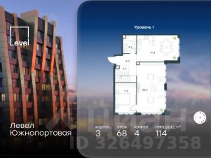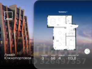 Цена указана с учётом скидки при 100%-й оплате, несубсидированной ипотеке, рассрочке (кроме программы ''Рассрочка 0%'').В северной части района Печатники продается многокомнатная квартира площадью 113.00 кв.м без отделки. Квартира расположена на 68 этаже 68-этажного корпуса 3 в жилом комплексе комфорт-класса Левел Южнопортовая (компания Level Group/Левел групп). Отличная транспортная доступность:- 10 мин. пешком до станции метро ''Кожуховская'',- 20 мин. пешком до станции МЦК ''Дубровка'',- 3 мин. на авто до ТТК,- 13 мин. на авто до Садового кольца,- 15 мин. на авто до Бульварного кольца. Продуманный архитектурный проект:- авторская архитектура от бюро СПИЧ,- уникальные виды на реку, парки и достопримечательности города,- высота потолков в квартирах до 6 м,- окна высотой до 1,87 м с высоким коэффициентом сопротивления теплоотдаче. Расположение:Жилой комплекс Левел Южнопортовая строится в северной части района Печатники - самой приближенной к центру. Здесь будет сформирован новый район ''Южный порт'', где построят крупный жилой и общественно-деловой центр, аналогичный Москва-Сити. В течение 10-12 лет в этом месте появятся не только жилые дома, но и развитая инфраструктура для жизни и работы. А еще совсем рядом находится набережная Москвы-реки, где планируется построить причалы для речных трамвайчиков и канатную дорогу.Уже сейчас вокруг жилого комплекса работают десятки магазинов и торговых центров, рядом расположено 6 парков, среди которых музей-заповедник ''Коломенское''. В 10 минутах пешком - 2 муниципальных и 2 частных детских сада, 7 общеобразовательных школ.Внутренняя инфраструктура:Для отдыха жителей в каждом корпусе предусмотрено лобби, оснащенное местами для отдыха, гостевыми санузлами и лапомойками, а в отдельных корпусах - камином. За счёт больших окон и высоких потолков пространства будут наполнены воздухом и светом.На первых этажах жилого комплекса откроются магазины, салоны красоты, фитнес-центр. Для детей строятся собственные детский сад и школа. Благоустройство:Внутренний двор комплекса разработан совместно с бюро GAFA. Основная идея - создать аналог Центрального парка в Нью-Йорке, гармонично сочетая высотные здания и большое изолированное парковое пространство.Вся площадь двора-парка будет огорожена и составит более 2 га, из которых 45% - озеленение. Одним из самых важных ландшафтных элементов здесь станет небольшая речка, наполняющаяся во время дождя. Вокруг неё появится сеть из островов, внутри которых расположатся тематические зоны спорта и отдыха. Технологии и инженерия:- автоматическая передача в управляющую компанию показаний квартирных счётчиков,- телефонная связь, телевидение и интернет на базе оптической мультисервисной сети,- гостевой Wi-Fi в лобби и на территории двора,- единый ключ доступа для входа на территорию комплекса.