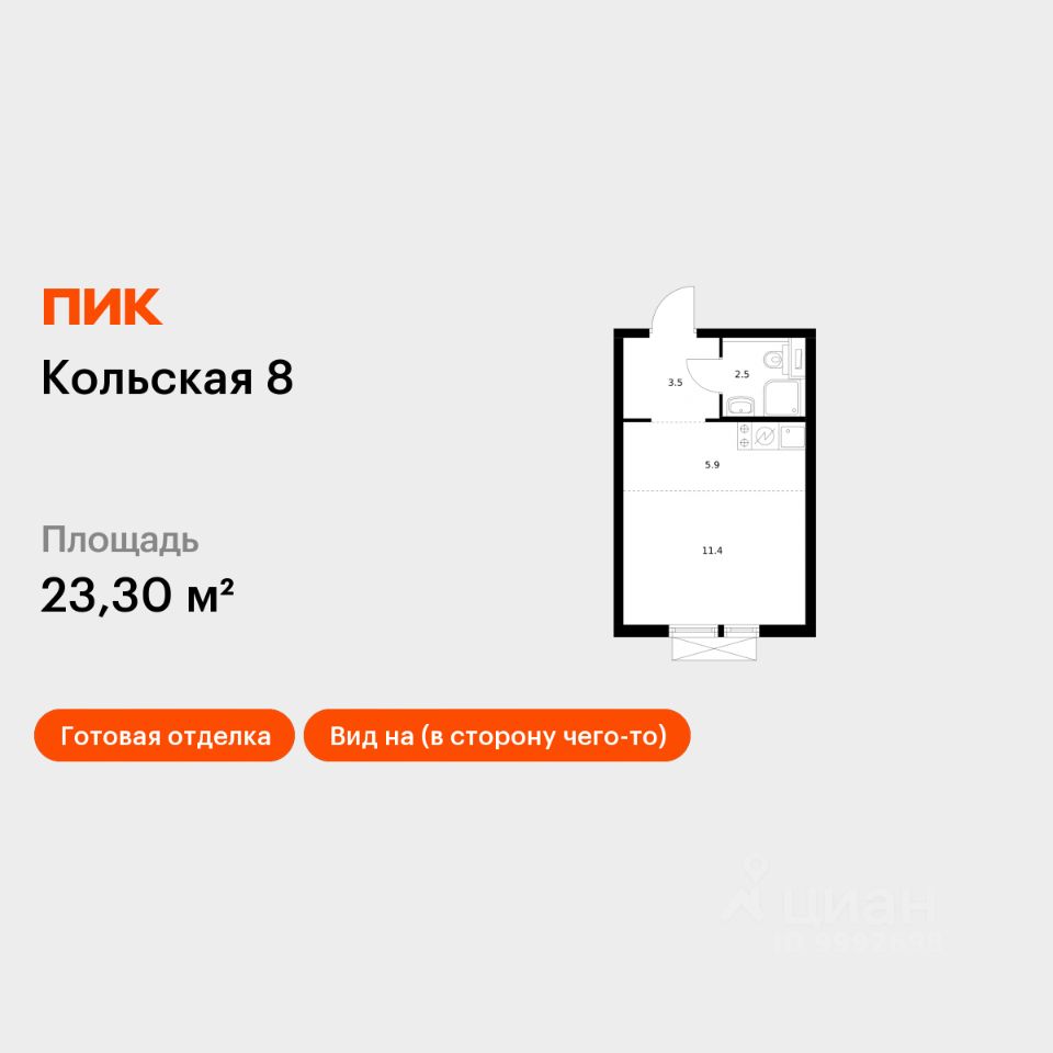 Продаётся квартира-студия площадью 23,3 кв.м на 25 этаже 25 этажного дома (Корпус 2.1, Секция 2) проекта ПИК Кольская 8. Светлый просторный подъезд на уровне земли, функциональная планировка, большие окна, c отделкой. Жилой квартал ''Кольская 8'' строится в Бабушкинском районе, в 8 минутах пешком от метро ''Свиблово''. До Ярославского шоссе на машине — 8 минут, а до ТТК — 16. До нескольких парков и набережной реки Яузы можно дойти пешком. Проект состоит из корпусов с подземными паркингами, школа и детский сад. В зелёных дворах-парках будут места для отдыха, современные детские и спортивные площадки. На первых этажах откроются магазины, кафе и другие сервисы — за кофе и свежим хлебом к завтраку можно будет просто спуститься на лифте. Рядом с кварталом есть всё для комфортной жизни: в 8 минутах неспешным шагом — благоустроенные парки Яуза и Свиблово, а до Ботанического сада можно доехать за 7 минут на машине. Недалеко от проекта находятся детские сады, школы, поликлиники, магазины и торговые центры. Артикул 834844 (Застройщик АО ''СПЕЦИАЛИЗИРОВАННЫЙ ЗАСТРОЙЩИК СТРОЙДЕТАЛЬ'')