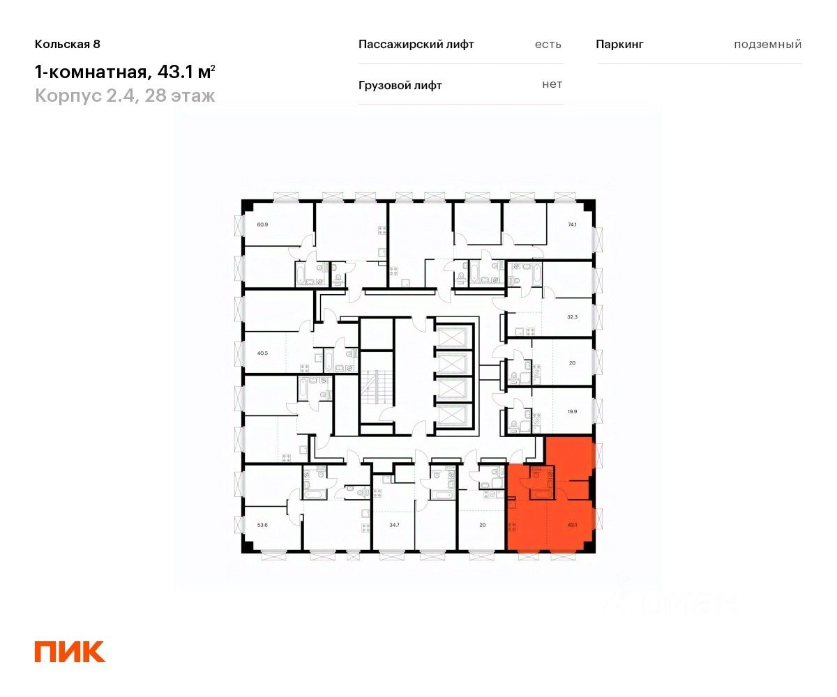 39 м² · Этаж 20 из 24