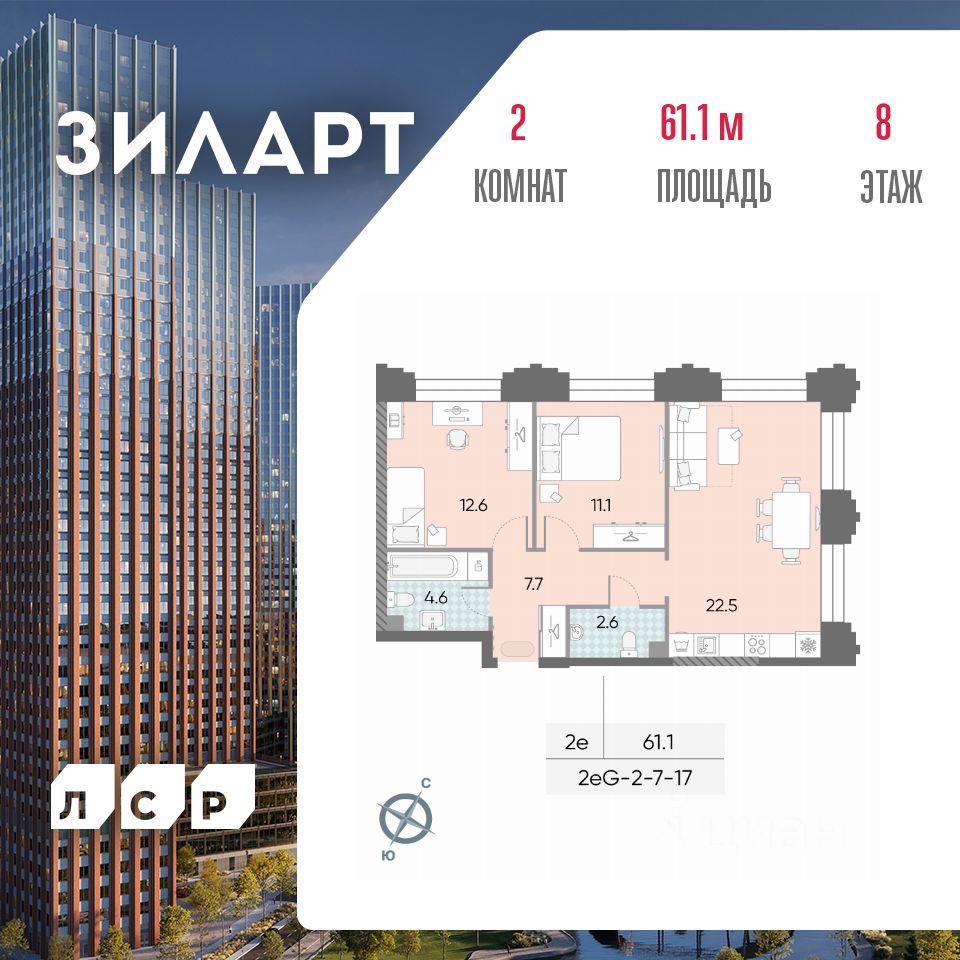 Продается 2-комн. кв-ра площадью 61.10 кв.м на 8 этаже 43 этажного монолитно-кирпичного дома в ЖК ''ЗИЛАРТ'' от Группа ЛСР. ЗИЛАРТ СПАРК — новый дом бизнес-класса в жилом квартале ''ЗИЛАРТ'' высотой 150 метров. Он сочетает в себе современную архитектуру, передовые технологии и восхитительные виды на ландшафтный парк ''Тюфелева Роща'' и бульвар Братьев Весниных. Близкое расположение к музейно-выставочному центру ''Коллекция'' и концертному залу создает вдохновляющую атмосферу места, где переплетаются жизнь и творчество. ЗИЛАРТ СПАРК расположен в престижном Даниловском районе. В пешей доступности находятся несколько станций метро: ''Тульская'', ''Автозаводская'', ''Технопарк'' и недавно открытая ''ЗИЛ'' Троицкой линии, с которой можно пересесть на одноименную станцию МЦК, а позже и на станцию ''ЗИЛ'' Бирюлевской линии (открытие запланировано на 2028 год). В пешей доступности есть вся необходимая инфраструктура: супермаркеты, салоны красоты, уютные кафе и рестораны, спортивные студии, места для досуга, отдыха и развлечений. На благоустроенной набережной Марка Шагала располагается действующий причал ''ЗИЛ''. Жилой комплекс даст возможность прогуляться по живописной набережной, просторному парку и бульвару. Любители здорового образа жизни и спортсмены оценят современные площадки для спортивных игр и фитнес-центр с бассейном. Молодые родители будут спокойны за настоящее и будущее детей благодаря современной образовательной среде. В ''ЗИЛАРТе'' расположена одна из самых больших школ России на 2,5 тысячи учеников.