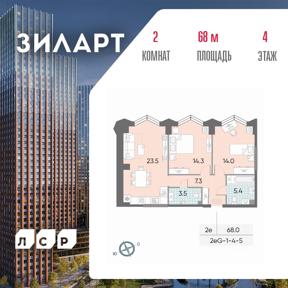 Продается 2-комн. кв-ра площадью 68.00 кв.м на 4 этаже 43 этажного монолитно-кирпичного дома в ЖК ''ЗИЛАРТ'' от Группа ЛСР. ЗИЛАРТ СПАРК — новый дом бизнес-класса в жилом квартале ''ЗИЛАРТ'' высотой 150 метров. Он сочетает в себе современную архитектуру, передовые технологии и восхитительные виды на ландшафтный парк ''Тюфелева Роща'' и бульвар Братьев Весниных. Близкое расположение к музейно-выставочному центру ''Коллекция'' и концертному залу создает вдохновляющую атмосферу места, где переплетаются жизнь и творчество. ЗИЛАРТ СПАРК расположен в престижном Даниловском районе. В пешей доступности находятся несколько станций метро: ''Тульская'', ''Автозаводская'', ''Технопарк'' и недавно открытая ''ЗИЛ'' Троицкой линии, с которой можно пересесть на одноименную станцию МЦК, а позже и на станцию ''ЗИЛ'' Бирюлевской линии (открытие запланировано на 2028 год). В пешей доступности есть вся необходимая инфраструктура: супермаркеты, салоны красоты, уютные кафе и рестораны, спортивные студии, места для досуга, отдыха и развлечений. На благоустроенной набережной Марка Шагала располагается действующий причал ''ЗИЛ''. Жилой комплекс даст возможность прогуляться по живописной набережной, просторному парку и бульвару. Любители здорового образа жизни и спортсмены оценят современные площадки для спортивных игр и фитнес-центр с бассейном. Молодые родители будут спокойны за настоящее и будущее детей благодаря современной образовательной среде. В ''ЗИЛАРТе'' расположена одна из самых больших школ России на 2,5 тысячи учеников.