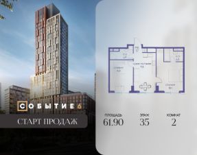 Продаётся 2-комнатная квартира от застройщика: общая площадь 72.60 м², жилая 31.80 м², кухня 24.10 м², 24-й этаж, жилой квартал ''Событие-6'', корпус 2 (секция 1) Срок сдачи: 1 квартал 2029 года.Позвоните сейчас и забронируйте квартиру! Продуманный до деталей. Созданный для жизни, полной счастливых событий. Парк-квартал СОБЫТИЕ - это жизнь класса премиум в престижном районе на Мосфильмовской улице.Архитектура мирового уровня. Выигрышное расположение на границе природного комплекса ''Долина реки Раменки''. Все для комфортной жизни и досуга: от детсадов и школ до ресторанов и медцентров. И новая точка притяжения - уже готовый парк ''Событие'' с пространствами активности для всех возрастов и интересов. Особенности квартала:• ''Парящие'' мосты и парк под облаками - уникальный дом с самыми завораживающими видами из окон ''в пол''• Собственный парк - сразу за порогом!• Архитектурная концепция от известных международных бюро LDA Design и UHA London• Инфраструктура ''тапочной доступности'': в кафе, школу, магазин - за пару минут!• Внутренний двор - настоящее продолжение вашего дома: закрытая охраняемая территория без машин, развивающие детские площадки, воркауты-зоны для тех, кто хочет быть в форме, площади для праздников и посиделок с соседями.