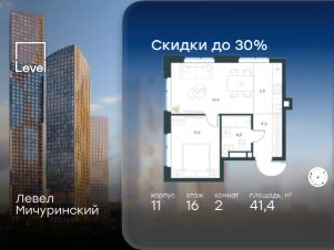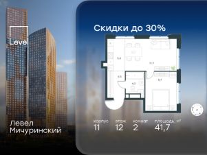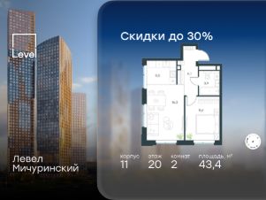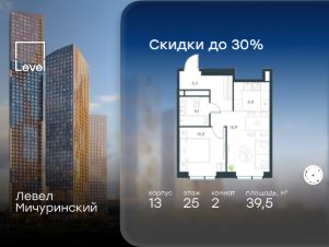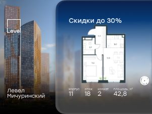 2-к, Левел Мичуринский ЖК, 30б Показать на карте