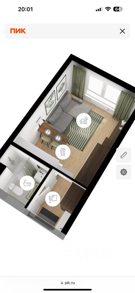 20 м² · Этаж 15 из 24