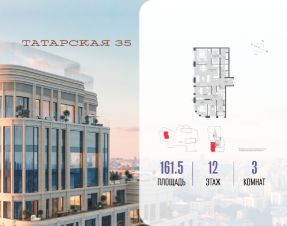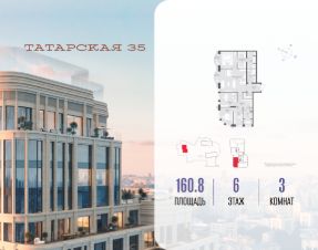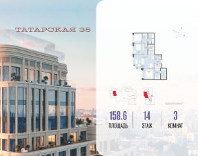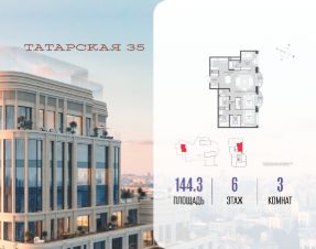 Продается просторная квартира площадью 144.30 м2 в жилом комплексе ТАТАРСКАЯ, 35. Квартира находится в 1 секции корпуса 1. Этаж 6-й из 20.Квартира без чистовой отделки, с просторной кухней 49.60 м2. Жилая площадь 46.20 м2. Высота потолка от 3.50.ТАТАРСКАЯ, 35 - новая архитектурная доминанта Замоскворечья, достопримечательность на фотопанорамах исторического центра Москвы. Элитный дом, созданный для тех, кто умеет смотреть далеко вперед, мыслить масштабно и воплощать собственный сценарий жизни.Вдохновляющие прогулки по променаду набережной, в уютных переулках, в парке ''Зарядье'', в Михайловском саду и Репинском сквере. Наслаждение высоким искусством в Третьяковской галерее, Доме Музыки, театральном музее им. А.А. Бахрушина, театре на Малой Ордынке. За окнами - Кремль, высотка на Котельнической, панорамы Замоскворечья и острова Балчуг, огни Садового кольца.Собственные спорт-румы, детская, репетиторская, бьюти-пространства, деловое пространство с коворкингом, переговорной и сигарной. Собственный трехуровневый фитнесс-центр с бассейном, тренажерным залом, сауной, хаммамом, массажным кабинетом. Площадь двора - 1,8 га, половина территории покрыта деревьями, кустарниками и лужайками.Дом расположен внутри Садового кольца - отсюда в считанные минуты можно добраться до важнейших мест столицы: достопримечательностей и парков, театров и ресторанов, деловых и административных центров. 7 минут до Кремля на автомобиле, 15 минут до Третьяковской галереи и 8 минут до Садового кольца пешком.Планировочные решения и визуализации предварительны, возможны изменения.