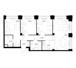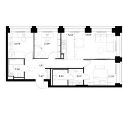 Цена указана с учётом скидки при 100%-й оплате, несубсидированной ипотеке, рассрочке (кроме программы ''Рассрочка 0%'').В жилом квартале продаётся 3-комнатная квартира площадью 66.70 кв.м без отделки. Квартира расположена на 21 этаже 64 этажного корпуса 2 в жилом комплексе комфорт класса Левел Звенигородская (компания Level Group/Левел групп). Отличная транспортная доступность- 5 мин. пешком до метро ''Звенигородская'' (откроется к окончанию строительства),- 18 мин. пешком до станции МЦК ''Хорошёво'' и станции БКЛ ''Народное ополчение'',- 4 мин. на авто до ТТК,- 8 мин. на авто до Садового кольца,- 15 мин. на авто до Кремля. Продуманный архитектурный проект- Концепция от студии Станислава Михаловского, в основу которой легло единение природы и города,- Двухкамерные стеклопакеты в окнах, алюминиевый и ПВХ профиль - в квартирах тепло зимой и прохладно летом,- С верхних этажей откроются панорамные виды на город, Москву-реку, ''Москва-Сити'' и Москворецкий парк,- Лобби со всеми удобствами: окна в пол, высокие потолки до 4,7 м, лаунж-зоны, колясочные, гостевые санузлы и мойки для лап животных,- Централизованные водонагреватели гарантируют круглогодичную подачу горячей воды в каждую квартиру. БлагоустройствоКонцепция благоустройства разработана совместно с бюро UNK landscape. Высота башен приближается к 200 метрам - они словно касаются неба. Небесный простор проецируется на территорию двора с помощью подсветки, визуально увеличивая пространство и отражаясь в авторских элементах архитектуры.На территории площадью 0,45 га расположатся:- ''Облако событий'' - место встреч и общения,- ''Облако спорта'' - всё для поддержания себя в форме,- ''Облако принятия решений'' - пространство для работы на свежем воздухе,- ''Облако спокойствия'' - для отдыха в тишине природы,- ''Облако игр'' - площадки для подростков и самых маленьких. ИнфраструктураВ жилом комплексе откроется 21 коммерческое помещение: продуктовые лавки, кафе, салоны красоты, службы доставки и творческие студии.Этап 1 включает строительство двухуровневого подземного паркинга. Всего здесь расположится 351 машино-место, включая семейные места, и 264 кладовых помещения.В распоряжении жителей развитая инфраструктура района: 15 супермаркетов, 5 спортивных объектов, 9 медучреждений, 7 детских садов, 4 школы, 3 благоустроенных парка - всё в шаговой доступности. ИнженерияКомфортное перемещение внутри домов будут обеспечивать надёжные лифты с доступом в паркинг с жилых этажей. В каждом корпусе предусмотрено до шести кабин, включая сервисные лифты.Попасть на территорию комплекса можно только по единому ключу доступа. Видеонаблюдение установлено на входах в подъезды, в лобби, в общих зонах, на въезде в паркинг. Гости смогут связаться с жителями дома через входные видеопанели, а управлять доступом на территорию можно через видеодомофон или приложение на телефоне.