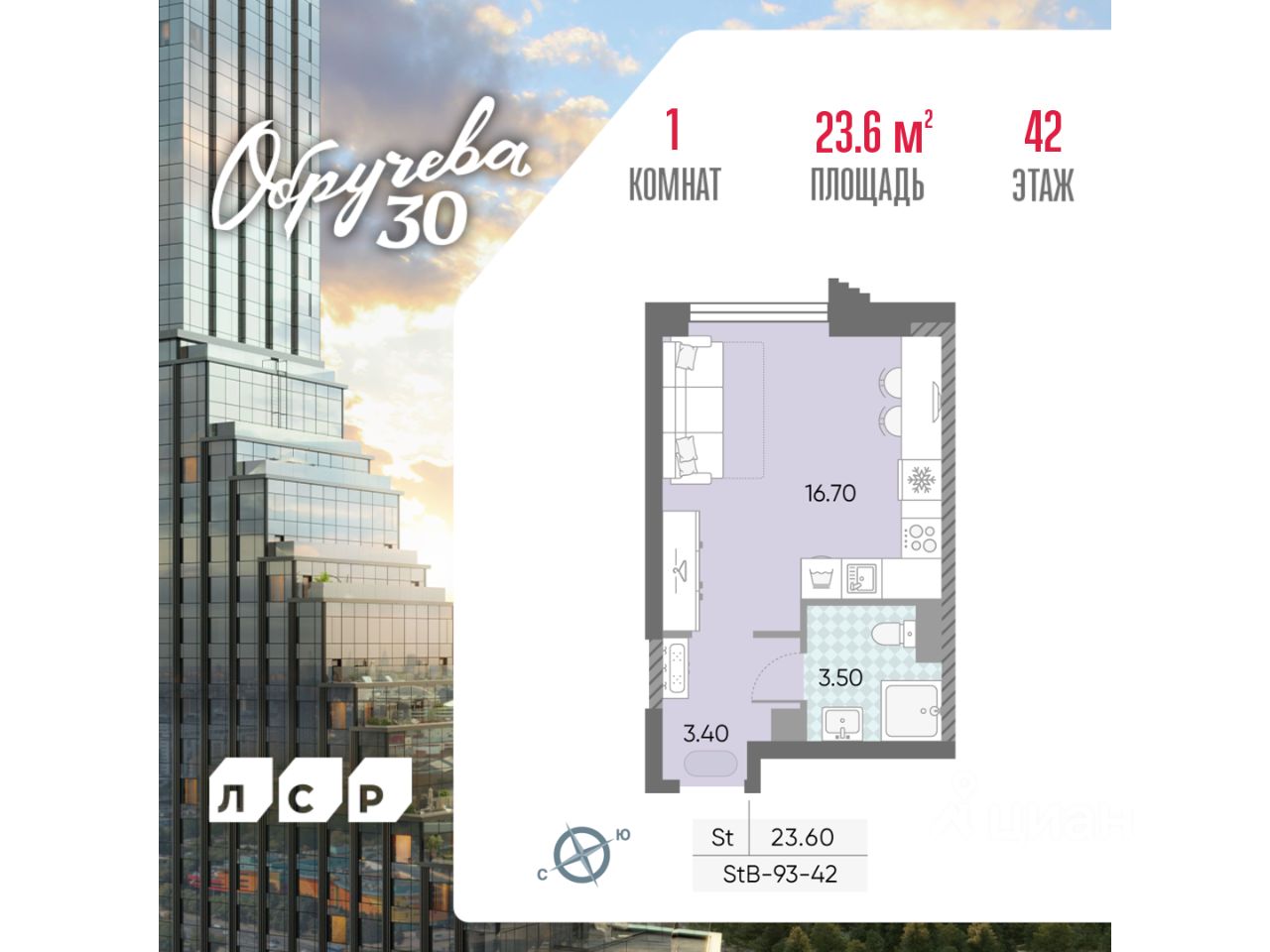 23 м² · Этаж 42 из 58