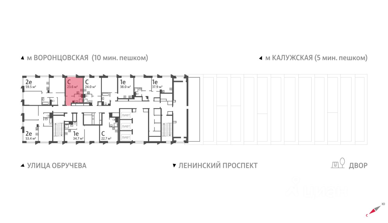 Продается квартира-студия общей площадью 23.6 кв. метров на 42 этаже дома бизнес-класса ''Обручева 30''. Дом располагается в 5 минутах ходьбы до станции метро ''Калужская'' и 10 минутах до станции метро ''Воронцовская''. Для автомобилистов удобный и быстрый выезд на улицы Обручева и Профсоюзную. Дом бизнес-класса ''Обручева 30'' представляет собой две башни, высотой 155 и 197 метров (45 и 58 этажей), и предлагает ряд преимуществ для своих жителей. Внутри есть приватный двор с оригинальным ландшафтным дизайном, а также просторное лобби с потолками высотой до 10 метров, лаунж-зоной, мягкими диванами и огромным камином. Кроме того, он расположен в непосредственной близости от ведущих университетов страны, имеет удобный доступ к 5 школам и 2 детским садам.