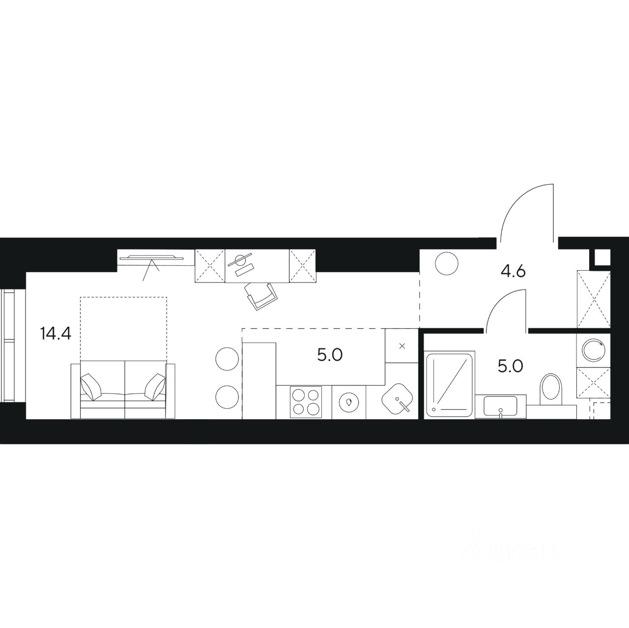 19 м² · Этаж 20 из 52