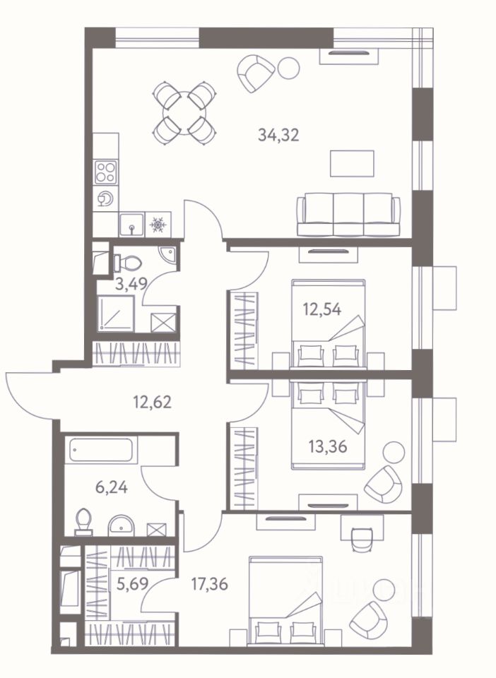 Трехкомнатные