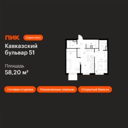 Продаётся 2-комн. квартира площадью 58,2 кв.м на 23 этаже 32 этажного дома (Корпус 3.6, Секция 3) проекта ПИК Кавказский бульвар 51. Светлый просторный подъезд на уровне земли, функциональная планировка, большие окна, c отделкой. ''Кавказский бульвар 51'' — современный жилой квартал в районе Царицыно. Проект частично реализован. ''Кавказский бульвар 51'' находится в районе Царицыно, недалеко от одноимённого музея-заповедника. До метро ''Кантемировская'' — 17 минут пешком. За 20 можно дойти до станции ''Чертаново''. В 10 минутах на машине — МКАД, в 11 минутах — Варшавское шоссе, а в 16 минутах — ТТК. В проекте жилые дома высотой от 5 до 33 этажей, детский сад и школа. На первых этажах доступны магазины, кафе, салоны красоты и другие сервисы — чтобы купить кофе и свежий хлеб к завтраку, можно просто спуститься на лифте. В уютных дворах-парках есть места для отдыха и детские площадки. Для прогулок на свежем воздухе мы построим для жителей широкий пешеходный бульвар. В районе вокруг ''Кавказского бульвара 51'' есть всё для комфортной жизни: детские сады, школы, поликлиники, магазины и торговые центры. Девять минут на машине — и вы у музея-заповедника ''Царицыно'', где можно гулять среди исторических построек, лежать на траве под тенью деревьев или заниматься спортом на специальных площадках. Есть парки и поближе: до Аршиновского можно дойти за 8 минут, а до парка ''Сосенки'' — за 13 минут. Артикул 999027 (Застройщик АО ''СПЕЦИАЛИЗИРОВАННЫЙ ЗАСТРОЙЩИК ''ТОРГОВЫЙ ДОМ СПУТНИК'')