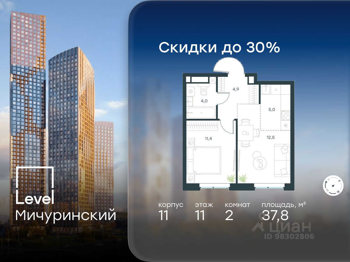 Цена указана с учётом скидки при 100%-й оплате, несубсидированной ипотеке, рассрочке (кроме программы ''Рассрочка 0%''). В жилом квартале, расположенном в южной части района Западное Дегунино, продаётся 2-комнатная квартира площадью 51.60 кв.м без отделки. Квартира расположена на 39 этаже 40-этажного корпуса 5 в жилом комплексе комфорт-класса Level Селигерская (компания Level Group/Левел групп). Отличная транспортная доступность: - 10 мин. пешком до станции метро ''Верхние Лихоборы'', - 15 мин. пешком до станции метро ''Селигерская'', - 20 мин. пешком до станции МЦД-3 ''Моссельмаш'', - 11 мин. на авто до МКАД, - 13 мин. на авто до ТТК, - 16 мин. на авто до Садового кольца. Расположение Район отличается богатой социальной инфраструктурой: школы, детские сады, поликлиники, магазины, фитнес-клубы, торговые центры - всё близко к дому. Рядом с Level Селигерская расположено 5 парковых зон. В 3 минутах от дома расположен перспективный сквер-парк. В 10 минутах пешком находится парк им. Святослава Фёдорова, в 13 минутах на велосипеде - парк ''Ангарские пруды''. В 7-11 минутах на автомобиле - два крупных природных объекта: Тимирязевский парк и Главный ботанический сад Российской академии наук. Благоустройство Внутренние дворы жилого комплекса огорожены от машин, а их функциональное наполнение отличается в зависимости от очереди строительства. На территории 2-й очереди жителей ждут уютные навесы с качелями, павильон-читальня, волейбольная площадка, беседки, а также детские и спортивные площадки. Технологии и инженерия Для входа на территорию комплекса предусмотрен единый ключ доступа. Все общественные зоны оснащены камерами видеонаблюдения, по заявке собственнику предоставляется возможность просмотра изображения отдельных видеокамер на его мобильном устройстве. При въезде в паркинг функционирует система распознавания госномеров. Кроме того, для комфорта жителей создано мобильное приложение, с помощью которого можно удаленно контролировать доступ на придомовую и жилую территории. Другие преимущества жилого комплекса - Высокая освещённость квартир: в большинстве из них не менее трёх окон, - Супермаркет, магазины, кафе, пекарни и многое другое на первых этажах домов, - Частный детский сад, - Стильные дизайнерские лобби с высокими потолками до 4,3 м. и окнами в пол, для питомцев предусмотрена лапомойка, - 30+ планировочных решений: от компактных студий до просторных семейных квартир, - С каждого этажа дома на лифте можно спуститься в подземный отапливаемый паркинг.''