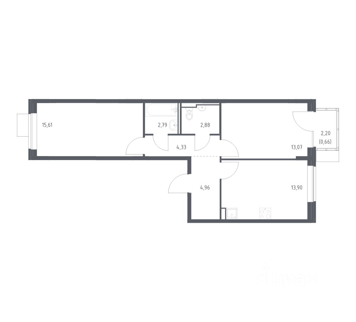 2-к, Квартал Домашний ЖК, 2