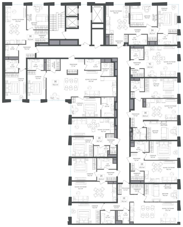 70 м² · Этаж 18 из 18