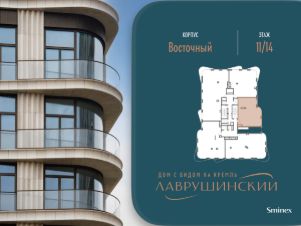Светлая квартира площадью 88.2 кв. м с окнами на южной стороне. Продуманная планировка позволяет разместить одну или две отдельные спальные комнаты.''Лаврушинский'' - бескомпромиссный дом с лучшими видами на Кремль. Благодаря расположению всего в одном километре от Кремля, своей высоте и малоэтажной окружающей застройке, из квартир открываются поразительные прямые виды на главные достопримечательности центра Москвы, включая храм Христа Спасителя и собор Василия Блаженного. Расположение в глубине квартала, посередине парка, дает удивительное для центра ощущение тишины и простора.На закрытой территории находится самый большой на элитном рынке собственный ландшафтный парк площадью 1,4 га с фонтаном, ручьём, зонами для воркаута и тихого отдыха. KIDS LAB: развивающая детская площадка на улице и игровая комната в помещении. FIT LAB: фитнес-клуб с 25-метровым бассейном, beauty room, доступные только для жителей.В проекте уникальный выбор квартир с просторными балконами, пентхаусов с террасами, бассейнами и каминами, максимальными видовыми характеристиками, а также роскошных вилл. Всего - 153 квартиры и 101 продуманное планировочное решение. Высота потолков составляет от 3,5 до 8,25 м. В доме предусмотрен 2х-уровневый паркинг на 279 машино-места.В доме предусмотрен полный комплекс систем комфорта, включающий приточно-вытяжную вентиляцию с тонкой фильтрацией с принципом забора воздуха с высоты 50 метров для повышения продолжительности жизни, отдельный сервисный лифт для обслуживающего персонала и другие современные системы.