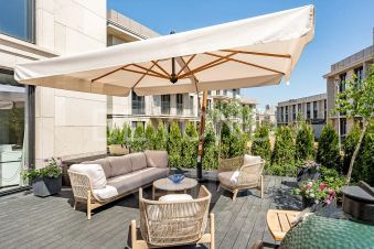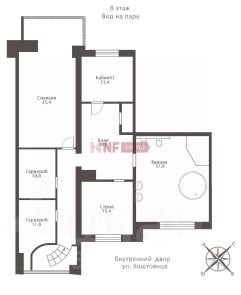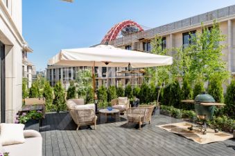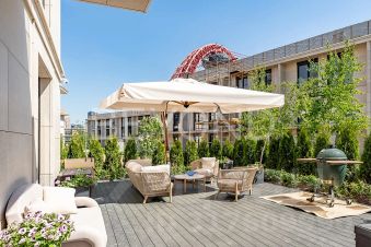 ОПИСАНИЕ КВАРТИРЫ 4 ЭТАЖ, 200 м²В квартире выполнена премиальная дизайнерская отделка сиспользованием высококачественных и натуральных материалов,таких как: натуральный мрамор, шпон дуба, сатинированная сталь,декоративная штукатурка.ПЛАНИРОВОЧНОЕ РЕШЕНИЕ:- Кухня гостиная с обеденной зоной (58,32 кв.м),- Мастер спальня со своим санузлом (душевая) и гардеробнойкомнатой (44,23 кв.м),- Мастер спальня со своим санузлом (ванна) и гардеробнойкомнатой (19,43 кв.м),- Спальня со своим санузлом (душевая) (19,7 кв.м),- Кабинет/спальня (14,35 кв.м),- Постирочная (4,03 кв.м),- Гостевой санузел (3,71 кв.м),- Холл, коридор (24,25 кв.м).Квартира полностью укомплектована бытовой техникой и мебелью.Техника: Miele, Liebherr,Мебель: Minotti, FlexForm, Poliform, Cattelan ItaliaСантехника: Gessi, Omoikiri, Сleo, Salini.Освещение: Центр свет, Astro lighting, CVL Luminaires, Aromas DelCampo, Foscarini, Vibia, Marset.- двери скрытого монтажа Union,- напольные покрытия (инженерная доска 18 мм, дуб, мрамор),- ковры Bo Concept,- текстиль (Итальянские ткани, индивидуальный пошив),- электрофурнитура Jung.ТЕХНИЧЕСКИЕ ХАРАКТЕРИСТИКИ- индивидуальное кондиционирование Daikin,- форсуночная система увлажнения UniverseDIY,- общедомовая система приточно-вытяжной вентиляции,- система защиты от протечек Neptun,- шумоизоляция (полы, стены, потолок).О КОМПЛЕКСЕ Жилой комплекс премиум-класса в Хамовниках, рядом с парком имени Мандельштама. Состоитиз пяти корпусов переменной этажности, два из которых с пентхаусами.Внутри комплекса есть СПА-центр и фитнес-клуб с бассейном, английский мужской клуб, детская комната, клубный ресторан с доставкой еды, рестораны Москвич и Black Market, музей ретроавтомобилей Автовилль.