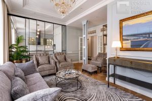 Предлагается эксклюзивная квартира в элитном жилом комплексе ''Дворянское Гнездо''. Это полностью готовое к проживанию пространство с премиальной отделкой, отмеченное в дизайнерских журналах как ''Проект года''. Интерьер выдержан в спокойной бежевой гамме и теплых тонах дерева с использованием исключительно первоклассных материалов. Уникальная особенность квартиры - продуманное функциональное зонирование, разделяющее пространство на хозяйский и детский блоки, что обеспечивает комфорт и приватность для всех членов семьи. Планировка (потолки 3,1 м): •Хозяйский блок: включает кухню-столовую, просторную гостиную с дровяным камином, кабинет с дровяным камином, две мастер-спальни (каждая со своей ванной и гардеробной) и гостевой санузел. •Детский (или гостевой) блок: полностью автономен и включает собственную кухню-гостиную, три спальни с ванными комнатами, гардеробную, постирочную и гостевой санузел. Из окон открываются виды на исторические переулки Арбата и знаменитый шпиль МИД. ЖК ''Дворянское Гнездо'' - это оазис в стиле итальянской классики в самом центре Москвы. Резидентам доступна уникальная внутренняя инфраструктура: •Роскошный внутренний двор-патио с фонтаном, мраморными колоннами и мозаичным панно. •Приватный wellness-клуб: бассейн с зоной отдыха, сауна, тренажерный зал, комната для танцев. •Комната для переговоров. •Круглосуточный консьерж-сервис, подземный паркинг и закрытая охраняемая территория. Локация в тихих переулках ''Золотой мили'' обеспечивает удобный доступ ко всей инфраструктуре Старого и Нового Арбата, лучшим ресторанам и культурным центрам столицы.