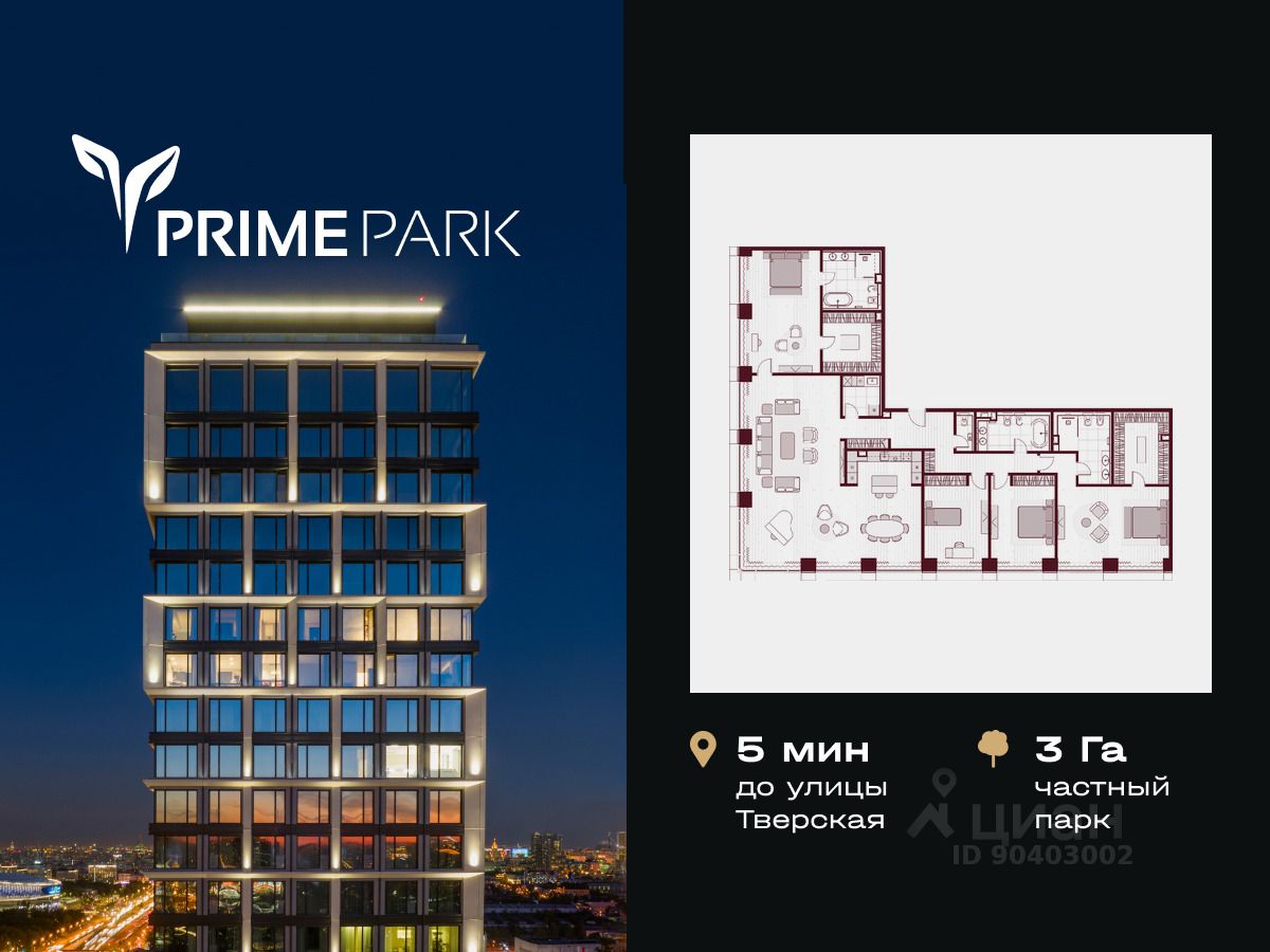Жилой квартал Prime Park воплощает все преимущества premium-living. Престижная локация на Ленинградском проспекте, 37: - 5 мин. от Тверской улицы, Патриарших прудов и Белой площади, - 20 мин. до аэропорта ''Шереметьево'' или ''Москва-Сити'', - 4 парка — Ходынское поле, Петровский и Чапаевский парки, Березовая роща, - 4 станции метро — ''ЦСКА'', ''Аэропорт'', ''Динамо'' и ''Петровский парк''. Многократный победитель премий European Property Awards и Urban Awards, а также на протяжении пяти лет остается самым продаваемым проектом в своем сегменте. Premium-living Консьержи предугадывают желания резидентов и берут на себя выполнение практически любых бытовых задач. В квартале также есть парк-рейнджер и охрана. Для дополнительного удобства в МОПах предусмотрены почтовые комнаты, колясочные и комнаты для мытья лап домашних питомцев, комната для хранения интернет-заказов. Наличие сервисного входа для персонала позволяет разделить трафик, сохраняя приватную атмосферу в лобби. Резидентам нужно открыть только одну дверь, чтобы оказаться дома: valet-парковщики открывают дверь автомобиля и отвозят его на подземный паркинг, беллмены открывают двери при входе в башню и помогают донести вещи до квартиры, интеллектуальная система обеспечивает бесконтактный вызов лифта. Развитая инфраструктура Близость к центру Москвы, рядом крупнейший ТЦ ''Авиапарк'', ВТБ Арена, Мегаспорт, ВЭБ Арена, в окружении красивейших парков, включая ультрасовременный Ходынский парк площадью 25 га с панорамными качелями, набережной, фонтанами, детскими и спортивными площадками. На территории квартала предусмотрены приватный фитнес-центр с 25-метровым бассейном и спа, подземный паркинг с кладовыми, местами для хранения велосипедов, электрозарядками и детейлинг-центром для обслуживания автомобилей. На первых этажах башен расположатся кафе и рестораны, цветочный магазин, аптека, салон красоты, премиальный супермаркет и бытовые сервисы. Частный парк Общее парковое пространство квартала — 5,5 га, из них 3 га отведено под частный парк эксклюзивно для резидентов. Большой фонтан, аллеи для прогулок, крупномерные деревья, арт-инсталляции, водные глади, детские площадки и воркаут-зона создают гармоничное сочетание жизни на природе со всеми преимуществами мегаполиса. Уникальная квартирография Более 80 вариантов планировочных решений от однокомнатных квартир до двухуровневых дуплексов и пентхаусов. Панорамные окна, высокие потолки, мастер-спальни, балконы и террасы создают особенный комфорт и уют. Авторская архитектура и дизайн Четыре башни сданы, ключи выдаются в день сделки, 2 башни на этапе строительства, сдача в 2023 и 2024 гг. Уникальный архитектурный ансамбль и ландшафтный дизайн, благородные и ценные материалы в оформлении лобби, предметы искусства, арт-объекты и элементы декора, выполненные на заказ специально для Prime Park, становятся отражением яркой индивидуальности резидентов квартала.