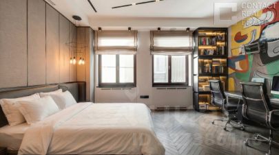 Роскошные апартаменты на пятом этаже клуба ''У Патриарших''Предлагается эксклюзивное пространство площадью 350 м² с четырьмя спальнями, расположенное на пятом этаже семиэтажного клубного дома ''У Патриарших'', всего в 9 минутах пешком от метро ''Пушкинская''. Это идеальный выбор для ценителей приватности, эстетики и высокого уровня жизни в центре Москвы.Интерьер и комфортАпартаменты оформлены в нейтральной спокойной палитре с использованием благородных материалов — мрамора, оникса и травертина. Потолки высотой 3,2 м и панорамные окна ''в пол'' визуально расширяют пространство и наполняют его светом. Европейская мебель и техника создают уют и функциональность. Инновационная система ''умный дом'' позволяет управлять освещением, климатом и безопасностью дистанционно, а многоступенчатая фильтрация воздуха и воды обеспечивает максимальный комфорт и здоровье.Планировка и функции- Парадная прихожая с большой гардеробной и санузлом- Полностью оборудованная кухня- Просторная гостиная площадью 74 м²- Четыре мастер-спальни с ванными комнатами и гардеробными- Фитнес-зал с тренажёрами, душевой и хаммамом- Кабинет-библиотека- Блок для персонала с отдельной технической кухней и постирочной- Три балконаТакже доступно приобретение двух машино-мест в подземном паркинге, способных вместить три автомобиля.О домеКлубный дом в стиле ар-деко — это 7 этажей, фасад из натурального камня и витражи, рассчитанный на 25 семей. Входная зона оборудована лобби с зоной отдыха и консьерж-сервисом. На втором этаже действует ''Студия ТРИТЭ'' Никиты Михалкова, придающая дому творческую атмосферу. Все резиденции имеют панорамные окна с видом на тихий внутренний двор. Вечерами фасад подсвечивается, превращаясь в настоящий арт-объект. Высокий уровень приватности, безопасности и стиль жизни в делюкс-формате — здесь сочетается всё для комфортного проживания в центре столицы.ЛокацияЖить здесь — значит находиться всего в 2 км от Кремля и в 3 минутах пешком от Патриарших прудов — популярного места для прогулок, отдыха и встреч в лучших ресторанах. Рядом сад ''Аквариум'', Тверская улица с магазинами и развлечениями, фитнес-клуб World Class и престижная школа 2123. За 8 минут можно дойти до Новопушкинского сквера, а за 10 — до Садового кольца, что обеспечивает удобное и быстрое перемещение по городу.Идеальное сочетание уединённости, комфорта и столичной жизни — апартаменты ''У Патриарших'' создают новую планку для элитного жилья в Москве. [Лот #24827]