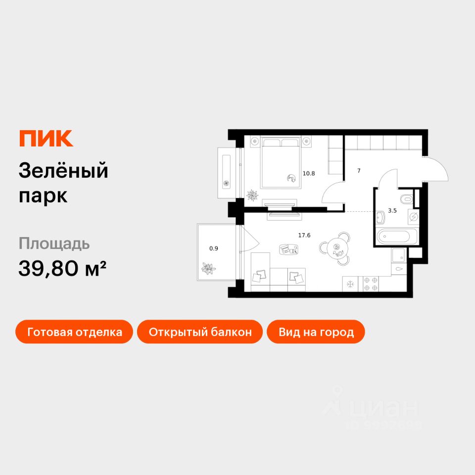 Продаётся 1-комн. квартира площадью 39,8 кв.м на 2 этаже 13 этажного дома (Корпус 5.3, Секция 3) проекта ПИК Зелёный парк. Светлый просторный подъезд на уровне земли, функциональная планировка, большие окна, c отделкой. Большой квартал с оригинальной архитектурой в обжитом районе Зеленограда. От него до станции МЦД-3 ''Зеленоград-Крюково'' — 20 минут пешком, до Кутузовского шоссе можно доехать на машине за 3 минуты, а до Пятницкого шоссе — за 5 минут. Характер ''Зелёного парка'' отражён в архитектуре. Квартал состоит из уютных разноэтажных блоков с оригинальными акцентами. Цветовая палитра проекта спокойная и сдержанная: оттенки белого и коричневого сочетаются с пастельным розовым и мятным. В проекте запланированы также два детских сада, две школы и паркинг. На первых этажах откроются магазины, кафе и другие сервисы — чтобы купить кофе и свежий хлеб к завтраку, можно будет просто спуститься на лифте. В уютных дворах-парках появятся места для отдыха, детские площадки, кофейни и зоны отдыха. Рядом — Зеленоградский лес, Парк Победы и Михайловский пруд, где можно гулять и заниматься спортом. У жителей ''Зелёного парка'' будет возможность получить московскую прописку. Для любителей спорта в 10 минутах пешком от квартала — велодром с BMX-трассой, физкультурно-оздоровительный комплекс Горизонт, а также лыжероллерная трасса длиной около 3 км. Артикул 1031025 (Застройщик АО ''СПЕЦИАЛИЗИРОВАННЫЙ ЗАСТРОЙЩИК ''ЗЕЛЕНОГРАДСКИЙ'')