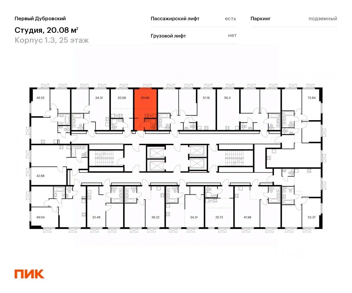 20 м² · Этаж 25 из 33