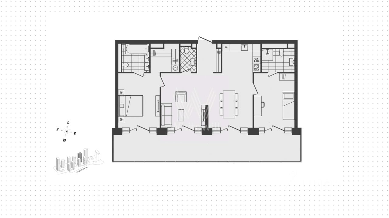 ID 65089: Эксклюзив. Только в Intermark. ЖК SkyView. Видовые апартаменты с впечатляющим радиусным остеклением в премиальном ЖК Sky View в районе Красной Пресни. Удачная планировка: гостиная с радиусными окнами в пол и выделенной зоной кухни, 2 мастер-спальни с собственными ванными комнатами и гардеробными, холл, постирочная, гостевой с/у. Состояние без отделки, при желании можно перепланировать жилое пространство по своему усмотрению и создать дизайн-проект своей мечты. Отличная инсоляция, очень красивые виды в сторону Белого дома, Москвы-реки, сталинских высоток. Высота потолка 3,1 м. Благоустроенная внутренняя территория без машин площадью 1 гектар включает все для комфортной жизни - премиальный фитнес-клуб с бассейном, минимаркеты, детский центр, кинотеатр. В подземном паркинге также расположены келлерные, где можно хранить крупногабаритные сезонные вещи. Крышу стилобата занимает красивый сад с зонами для отдыха жильцов. Рядом - вся насыщенная инфраструктура исторического центра столицы: парки, музеи, театры. Ближайшие метро Краснопресненская, Баррикадная, Улица 1905 Года. ПРЯМОЙ ПРЕДСТАВИТЕЛЬ СОБСТВЕННИКА. БОНУС АГЕНТУ. ОПЕРАТИВНЫЙ ПОКАЗ. БЕЗ КОМИССИИ ДЛЯ ПОКУПАТЕЛЯ. Intermark Real Estate - участник ассоциации AREA. Мы работаем в выходные и праздничные дни, будем рады вашим звонкам в любое время.