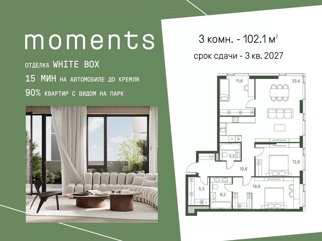 Цены указаны с условием 100% оплаты и стандартной ипотеки.Продается 3-к. квартира номер 343 общей площадью 83 кв.м. на 28-м этаже 30 этажного дома, корпус 2.1. С отделкой White Box.Moments — ЖК бизнес-класса, расположен на расстоянии вытянутой руки от старинного усадебного парка Покровское-Стрешнево. Moments — это единение города и природы, дом, который помогает обрести гармонию и баланс в жизни.Moments расположен на Волоколамском шоссе с удобным выездом в центр и в область, а также с расположенными в пешей доступности объектами транспортной инфраструктуры (МЦК и МЦД-2).Жилой комплекс будет состоять из 3 очередей — 8 корпусов высотой от 4 до 47 этажей. Здания будут расположены под разными углами для максимальной открытости солнцу и максимально роскошным видовым характеристикам.Внутренний двор:Иммерсивное благоустройство от британского бюро Gillespies и West8 сфокусировано на эмоциональном и чувственном опыте. Каждая прогулка по Moments погружает в путешествие со сменой сценариев и плавным потоком уникальных моментов.- Пешеходная экотропа,которая соединяет комплекс с парком Покровское-Стрешнево- Двор с фонтаном- Зеленые сады и лаунж-зоны- Пространства для пикников и общения- Зоны активного отдыха. Детские и спортивные площадки- Пешеходные тропы и велодорожки- Разнообразная коммерческая инфраструктура- Детский сад на 175 мест- Школа на 300 мест- Игровые площадки из натуральных материалов- Сенсорные сады- Безбарьерное зонирование