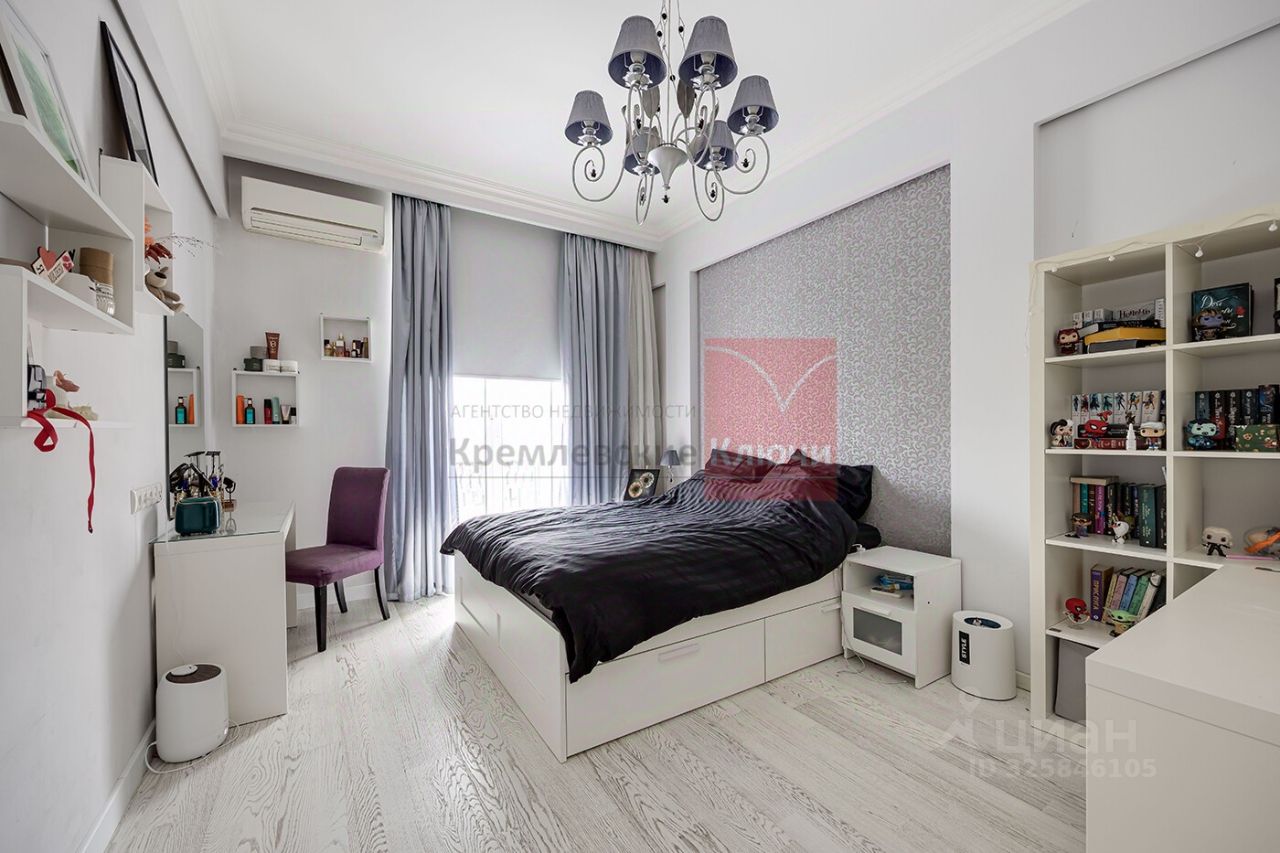 Стильная квартира с функциональной узаконенной планировкой. Просторная прихожая, гостиная, столовая, кухня, две спальни со своими санузлами, детская комната( кабинет, гостевая спальня), гостевой санузел, техническая комната, балкон. В квартире одиннадцать окон, из них два во двор. Во дворе детская площадка.