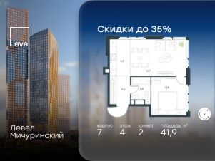 Цена указана с учётом скидки при 100%-й оплате, несубсидированной ипотеке, рассрочке (кроме программы ''Рассрочка 0%''). В жилом квартале, расположенном на границе с природным заказником ''Долина реки Очаковки'', продаётся 4-комнатная квартира площадью 95.80 кв.м с отделкой white box. Квартира расположена на 22 этаже 30-этажного корпуса 3 в жилом комплексе бизнес-класса Левел Мичуринский (компания Level Group/Левел групп). Отличная транспортная доступность: - от 10 мин. пешком до станции метро ''Мичуринский проспект''- 15 мин. пешком до станции метро ''Аминьевская''- 7 мин. на авто до МКАД- 10 мин. на авто до ТТК- 15 мин. на авто до Москва-Сити Продуманный архитектурный проект:- Выразительная архитектура от известных бюро: корпуса 1-6 - СПИЧ, корпуса 7-13 - Borisov Architects,- Из окон открываются живописные виды на парки, Москва-Сити и МГУ,- Высокие потолки до 6,35 м,- Стильные лобби с окнами в пол и высокими потолками до 4,7 м,- С каждого этажа дома на лифте можно спуститься в подземный отапливаемый паркинг.Расположение:Левел Мичуринский строится в одном из самых зелёных районов Москвы - Очаково-Матвеевское. Этот уголок столицы идеален для поддержания здорового образа жизни. В шаговой доступности от проекта находятся заказник ''Долина реки Очаковки'' - 1 мин. пешком и Очаковский парк - 7 мин. пешком. На велосипеде можно добраться до таких парков, как ''Событие'', парк Олимпийской деревни, парк 50-летия Октября и парк Школьников.В 15 минутах езды на авто расположено более 30 детских садов (из них 14 в пешей доступности), 32 школы (из них 13 в пешей доступности) и 14 вузов. Также в ближайшем окружении - более 25 медицинских учреждений, 11 спортивных клубов и 22 продуктовых супермаркета.Внутренняя инфраструктура:На территории жилого комплекса строится три детских сада и школа. На первых этажах домов откроется супермаркет, фитнес-центр, ресторан, кафе и другие сервисы. Подземные этажи займут паркинги: трёхуровневые - в этапах 1 и 2, одноуровневый - в этапах 3 и 4.Преимущества проекта:- 4,5 га благоустроенной территории с видовым мостом, уличным кинотеатром, зонами для тихого отдыха, работы, воркаута, площадки для петанка, футбола, настольного тенниса и пляжного волейбола.- Дизайнерские лобби с панорамным видом на двор, мойками для лап животных и комфортными зонами ожидания.- Безопасность жителей: круглосуточное видеонаблюдение всех зон общего пользования (лобби, лифты, паркинги, детские площадки), система контроля доступа, управление видеодомофоном через мобильное приложение, единый ключ доступа на территорию жилого комплекса.- Технологии и комфорт: высокоскоростной Wi-Fi в лобби и на придомовой территории, автоматическая система контроля и учёта ресурсов, абонентская связь с консьержем, распознавание номеров автомобилей при въезде в паркинг и выезде из него.