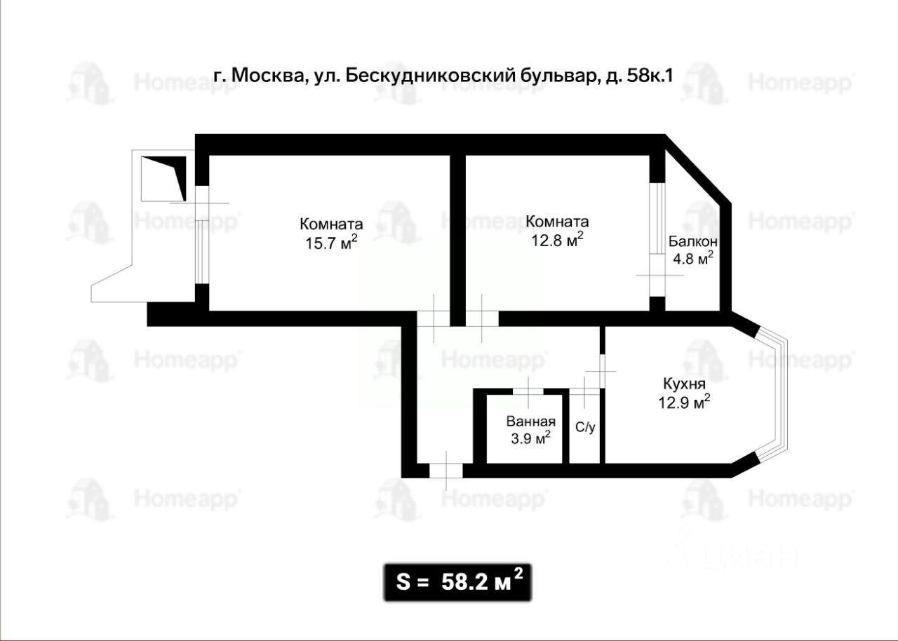 2-к, Бескудниковский бульвар, 58 корп. 1
