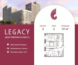 Светлая квартира общей площадью 83 м2 на 4-м этаже премиального жилого комплекса Legacy, расположенного в прекрасном зеленом районе Раменки. Отличная функциональная планировка: кухня-гостиная, 2 мастер-спальни со своими с/у и продуманной гардеробной зоной, гостевой санузел и просторный холл, который с первых шагов погружает в безупречное пространство изысканности и уюта. Жилое пространство спроектировано для исключительно комфортной жизни с возможностью реализации уникального дизайн-проекта. Для удобства будущих резидентов доступны два варианта отделки от застройщика: Premium и Elite премиальные материалы в отделке, мебель от европейских производителей, и освещение индивидуального изготовления. Жилой комплекс Legacy располагается на Мичуринском проспекте в районе с развитой инфраструктурой, богатой историей и высокой транспортной доступностью. Москва-река, Ботанический сад МГУ, главный корпус МГУ и Воробьевы горы на расстоянии прогулки от комплекса. Проект состоит из 9 секций переменной этажности от 8 до 17 этажей. В каждой секции не более 5 квартир на этаже, что обеспечивает высокий уровень приватности. Архитектура Проект Legacy разработан архитектурным бюро Speech. Его строгая лаконичность дополнена современными стандартами роскошной и комфортной жизни это бессменная классика, которая всегда вне моды. Благоустройство Свой приватный двор-сквер площадью 3 600 м2 с пространствами для всех возрастов: на территории располагаются игровые площадки, детский городок, песочница, воркаут-зоны, батуты, места для отдыха, лабиринты, настольный теннис и шахматные столы. Презентабельные лобби Дизайнерские лобби и холлы с премиальной отделкой. Изысканный стиль и высококачественные европейские материалы, отражающие высокий статус резидентов дома. Инфраструктура в доме Магазины, салон красоты, спортивная студия на первом этаже. А также ресторан Seasons, который позволяет разнообразить рацион и сделать каждый ужин особенным. Комфорт и безопасность Премиальный консьерж-сервис 24/7, круглосуточная охрана, видеонаблюдение, система СКУД, закрытый охраняемый паркинг и эксклюзивное мобильное приложение для решения бытовых вопросов резидентов.