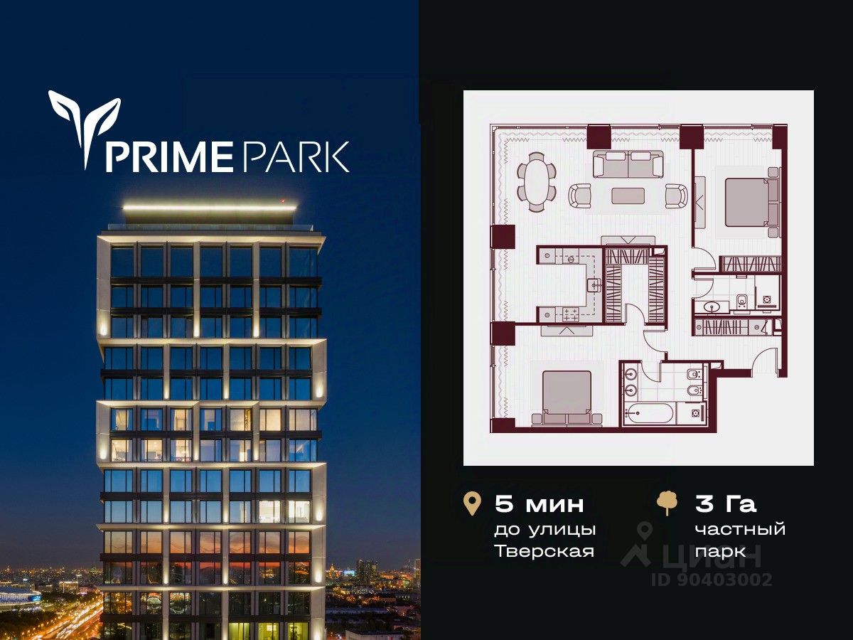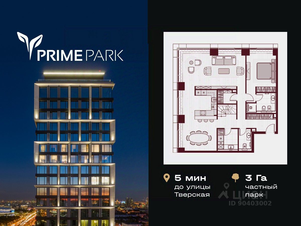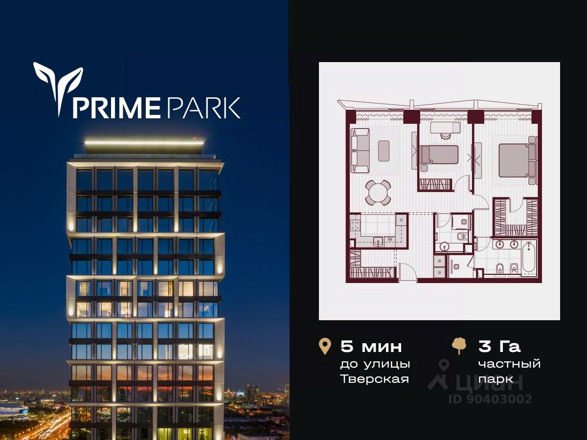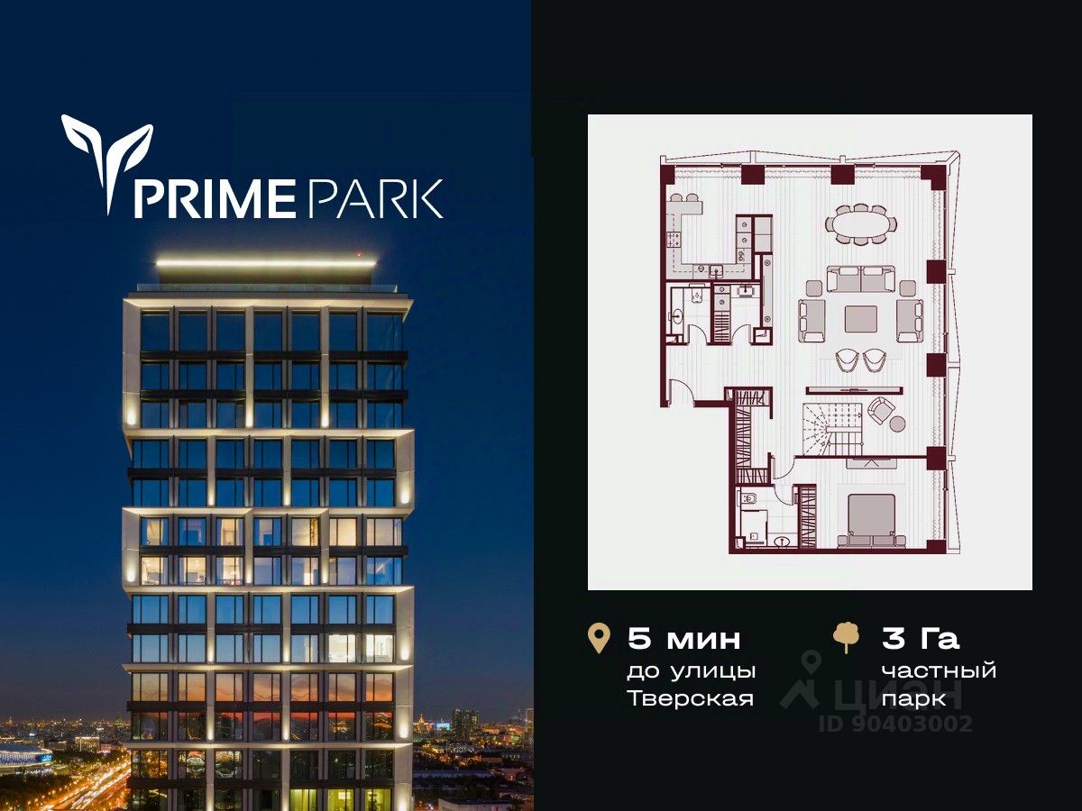 Жилой квартал Prime Park воплощает все преимущества premium-living. Престижная локация на Ленинградском проспекте, 37: - 5 мин. от Тверской улицы, Патриарших прудов и Белой площади, - 20 мин. до аэропорта ''Шереметьево'' или ''Москва-Сити'', - 4 парка — Ходынское поле, Петровский и Чапаевский парки, Березовая роща, - 4 станции метро — ''ЦСКА'', ''Аэропорт'', ''Динамо'' и ''Петровский парк''. Многократный победитель премий European Property Awards и Urban Awards, а также на протяжении пяти лет остается самым продаваемым проектом в своем сегменте. Premium-living Консьержи предугадывают желания резидентов и берут на себя выполнение практически любых бытовых задач. В квартале также есть парк-рейнджер и охрана. Для дополнительного удобства в МОПах предусмотрены почтовые комнаты, колясочные и комнаты для мытья лап домашних питомцев, комната для хранения интернет-заказов. Наличие сервисного входа для персонала позволяет разделить трафик, сохраняя приватную атмосферу в лобби. Резидентам нужно открыть только одну дверь, чтобы оказаться дома: valet-парковщики открывают дверь автомобиля и отвозят его на подземный паркинг, беллмены открывают двери при входе в башню и помогают донести вещи до квартиры, интеллектуальная система обеспечивает бесконтактный вызов лифта. Развитая инфраструктура Близость к центру Москвы, рядом крупнейший ТЦ ''Авиапарк'', ВТБ Арена, Мегаспорт, ВЭБ Арена, в окружении красивейших парков, включая ультрасовременный Ходынский парк площадью 25 га с панорамными качелями, набережной, фонтанами, детскими и спортивными площадками. На территории квартала предусмотрены приватный фитнес-центр с 25-метровым бассейном и спа, подземный паркинг с кладовыми, местами для хранения велосипедов, электрозарядками и детейлинг-центром для обслуживания автомобилей. На первых этажах башен расположатся кафе и рестораны, цветочный магазин, аптека, салон красоты, премиальный супермаркет и бытовые сервисы. Частный парк Общее парковое пространство квартала — 5,5 га, из них 3 га отведено под частный парк эксклюзивно для резидентов. Большой фонтан, аллеи для прогулок, крупномерные деревья, арт-инсталляции, водные глади, детские площадки и воркаут-зона создают гармоничное сочетание жизни на природе со всеми преимуществами мегаполиса. Уникальная квартирография Более 80 вариантов планировочных решений от однокомнатных квартир до двухуровневых дуплексов и пентхаусов. Панорамные окна, высокие потолки, мастер-спальни, балконы и террасы создают особенный комфорт и уют. Авторская архитектура и дизайн Четыре башни сданы, ключи выдаются в день сделки, 2 башни на этапе строительства, сдача в 2023 и 2024 гг. Уникальный архитектурный ансамбль и ландшафтный дизайн, благородные и ценные материалы в оформлении лобби, предметы искусства, арт-объекты и элементы декора, выполненные на заказ специально для Prime Park, становятся отражением яркой индивидуальности резидентов квартала.