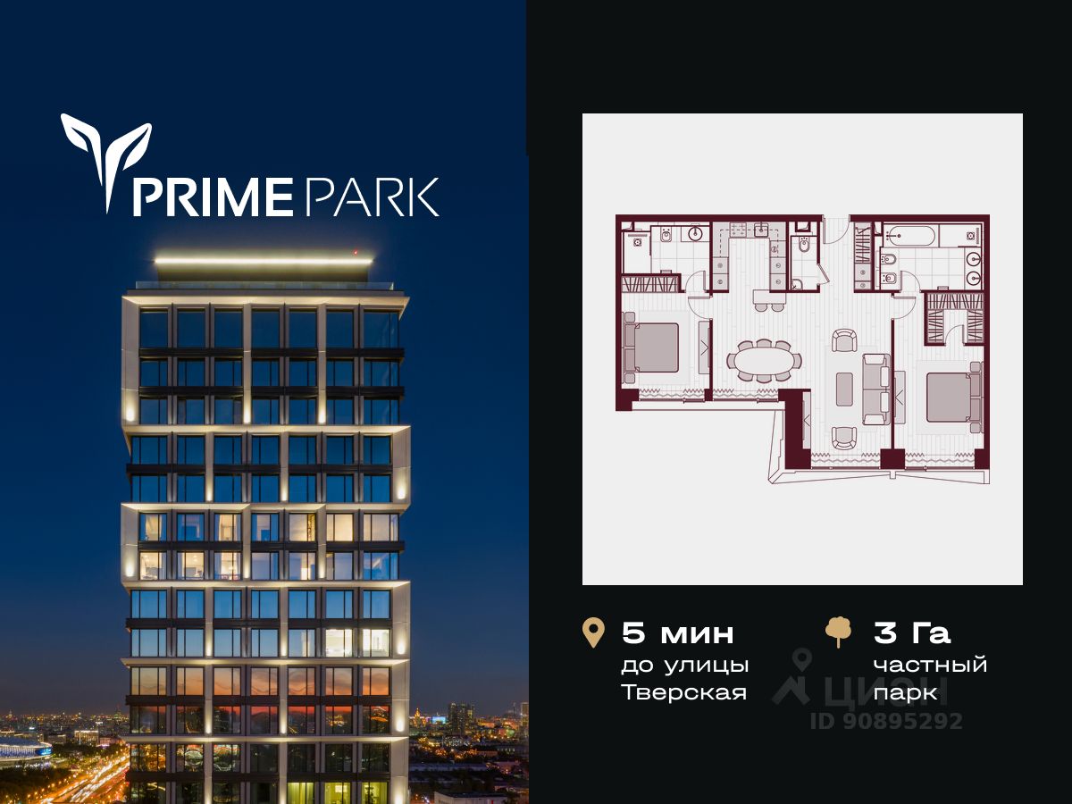 Жилой квартал премиум-класса Prime Park — оазис спокойствия и максимального комфорта с преимуществами жизни в большом городе. Он располагается на Ленинградском проспекте, 37/7, всего в 5 км от исторического центра Москвы. В пешей доступности находятся станции метро ''Динамо'', ''Сокол'', ''ЦСКА'' и ''Петровский парк'', в 10-ти минутах езды — ММДЦ ''Москва-Сити'', не более 20 минут займет поездка в аэропорт ''Шереметьево''. Концепция проекта Prime Park — это семейные резиденции премиум-класса. Квартал состоит из 9 корпусов высотой от 37 до 41 этажа. У каждой башни собственные входные группы, лобби, обслуживающий персонал. Уникальный ландшафтный дизайн составляют 4 парковые зоны, общая площадь которых 5,5 гектаров. Из них 3 гектара выделено на частный Центральный парк с авторскими арт-объектами, фонтанами, цветниками и прогулочными аллеями. Для детей разных возрастов будут построены 3 игровые площадки площадью от 170 до 400 кв. метров, включая крупный лазательный комплекс в современном стиле. Уникальная концепция проекта была неоднократно отмечена престижными наградами European Property Awards сразу в нескольких номинациях, в том числе за лучшую архитектуру высотных жилых проектов и лучшее ландшафтное благоустройство. Prime Park также удостоен премии Urban Awards за лучший жилой небоскреб в столице и лучшую управляющую компанию. Собственная инфраструктура На территории предусмотрен приватный оздоровительный центр с фитнес-клубом, 25-ти метровым бассейном, SPA-зоной и сауной, а также более 9 кафе и ресторанов, аптека, супермаркет, стоматология и службы быта. Для юных резидентов квартала появятся детский сад и британская школа с углубленным изучением английского языка. Премиальные сервисы Prime Park стал первым кварталом премиум-класса, который предложил пятизвездочные отельные сервисы. Услуги консьержей, беллменов доступны жителям квартала 24/7. Для удобства резидентов пользоваться ими можно с помощью мобильного приложения. Для автовладельцев оборудована вместительная подземная парковка с сервисом Valet-паркинга, собственной автомойкой и индивидуальными кладовыми разной площади. В холлах корпусов для посетителей созданы комфортные зоны ожидания с мягкой мебелью. Для дополнительного удобства предусмотрены сервисные комнаты, где можно помыть лапы питомцев после прогулки, оставить детскую коляску или велосипед, а также есть комната для хранения интернет-заказов и почтовая комната для отправки посылок. Безопасность Конфиденциальность частной жизни резидентов обеспечивают служба безопасности, современные системы видеонаблюдения без ''слепых'' зон и чувствительные противопожарные датчики. Эксклюзивный дизайн Атмосфера роскоши и спокойной уверенности нашла отражение в архитектурном облике башен и входных группах корпусов, созданном международным бюро Dyer. Облицовка внешних фасадов выполнена из натуральных долговечных материалов — немецкого клинкерного кирпича, гравированного камня и мрамора.