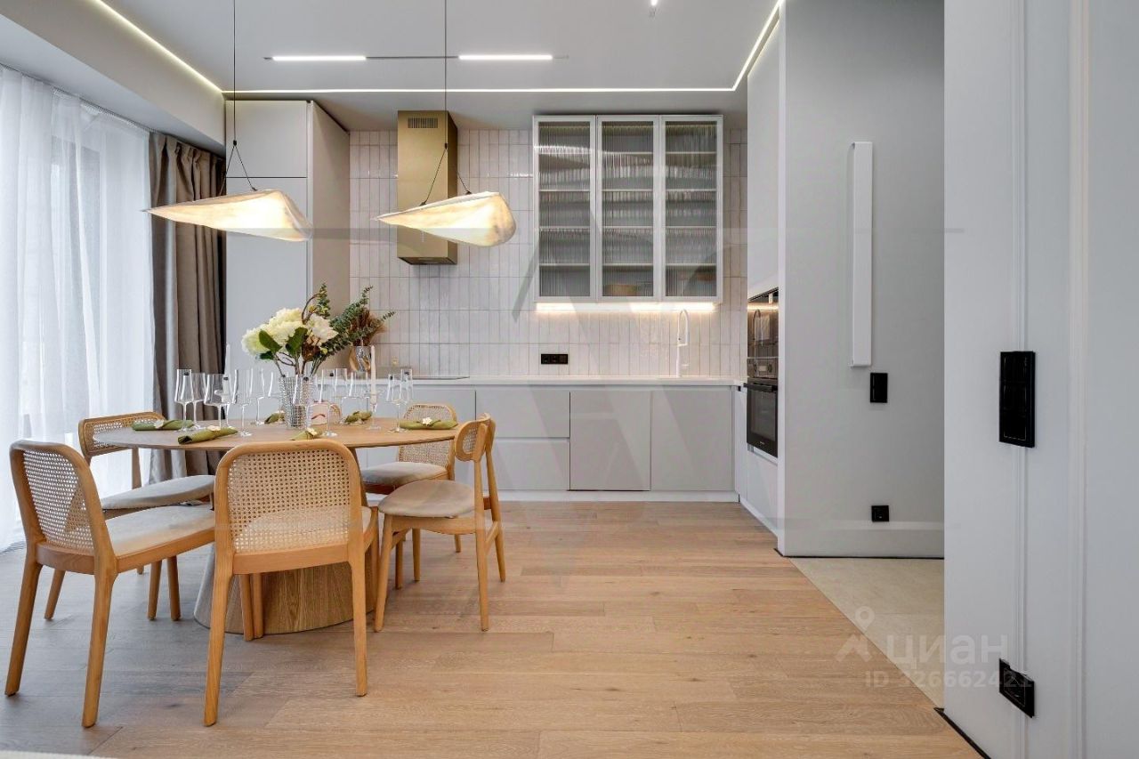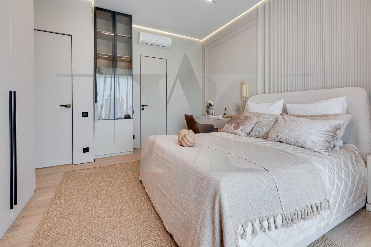 Просторная квартира с тремя спальнями и патио в комплексе премиум-класса Savvin River Residence на набережной Москвы-реки. Квартира общей площадью 177 м² расположена на четвёртом этаже. Интерьер оформлен в современном стиле. Установлены системы увлажнения воздуха и датчики протечек воды. Квартира укомплектована мебелью и бытовой техникой. Функциональная планировка включает кухню-гостиную с обеденной зоной и биокамином, мастер-спальню с собственной ванной комнатой и гардеробной, вторую спальню со своим санузлом, гостевую спальню, кабинет, гостевой санузел, гардеробную, прачечную и холл. Панорамные окна ориентированы на две стороны света, открываются виды на Москву-реку и благоустроенную территорию комплекса. Главное о доме. SAVVIN RIVER RESIDENCE — резиденция на Саввинской набережной с панорамами воды и куполов центра. Архитектуру четырёх домов разработало бюро ''Цимайло, Ляшенко и Партнёры'': светлый камень, спокойные вертикали, французские окна во всю высоту. Во внутренних пространствах — прогулочный парк и тихий двор без машин с вечерней подсветкой. В лобби — натуральный камень, латунные детали, высокий потолок, стойки ресепшн и мягкие зоны для встреч. Для жителей работают камерные лаунжи, фитнес с бассейном и спа. Многоуровневый паркинг с лифтовым доступом к лобби завершает набор ежедневных удобств. Главное о локации. На Саввинской набережной удобно бегать по утрам и гулять вечером с видом на башни Москва-Сити. В десяти минутах парк Красная Пресня и зоопарк, а для долгих прогулок подойдут Фрунзенская набережная и Нескучный сад. Соседи часто встречаются в ресторанах на Новом Арбате или в барах на Красном Октябре. Для детей рядом школа 1231 и лицей 1501. До Кремля отсюда всего 15 минут на машине. Комментарий эксперта. Меня зовут Инна Щекина — брокер компании Whitewill. Я отвечаю за продажу этого лота. Свяжитесь со мной, чтобы получить расширенную презентацию, больше фотографий или договориться о просмотре. Могу провести экскурсию по локации и познакомить вас с этим домом. ID 301 764.