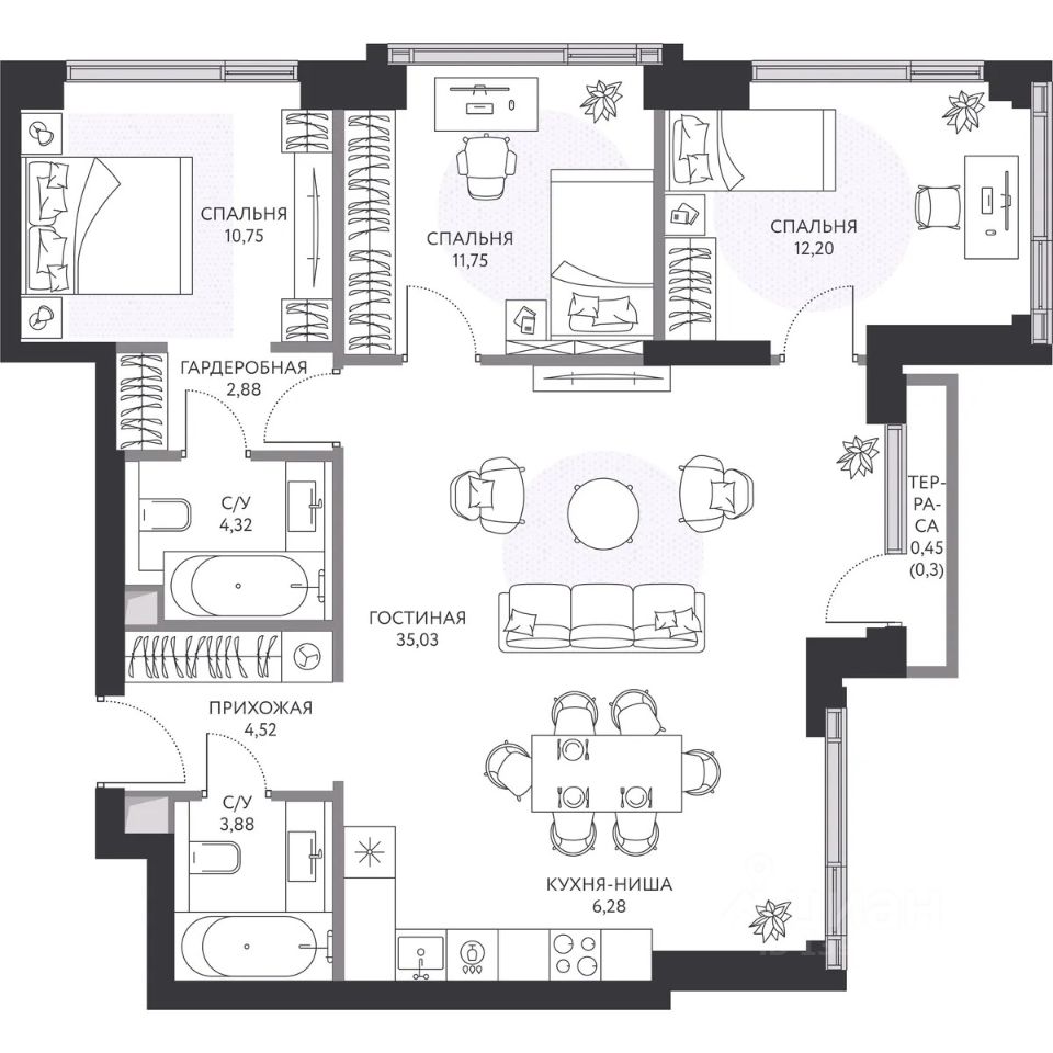Трехкомнатные