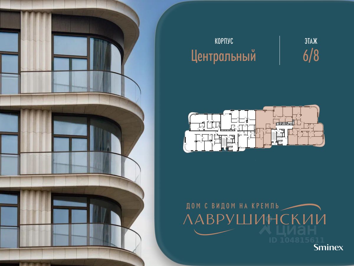 Просторная светлая квартира площадью 167.8 кв. м. Окна кухни-гостиной обращены в сторону Кремля и выходят в тихий Пыжёвский переулок, а панорамное остекление, моллированное окно и открытый балкон улучшают видовые характеристики квартиры. Продуманная планировка позволяет разместить три спальные комнаты с отдельными санузлами и гардеробными. Окна квартиры выходят на восточную и южную стороны. ''Лаврушинский'' - бескомпромиссный дом с лучшими видами на Кремль. Благодаря расположению всего в одном километре от Кремля, своей высоте и малоэтажной окружающей застройке, из квартир открываются поразительные прямые виды на главные достопримечательности центра Москвы, включая храм Христа Спасителя и собор Василия Блаженного. Расположение в глубине квартала, посередине парка, дает удивительное для центра ощущение тишины и простора. На закрытой территории находится самый большой на элитном рынке собственный ландшафтный парк площадью 1,4 га с фонтаном, ручьём, зонами для воркаута и тихого отдыха. KIDS LAB: развивающая детская площадка на улице и игровая комната в помещении. FIT LAB: фитнес-клуб с 25-метровым бассейном, beauty room, доступные только для жителей. В проекте уникальный выбор квартир с просторными балконами, пентхаусов с террасами, бассейнами и каминами, максимальными видовыми характеристиками, а также роскошных вилл. Всего - 153 квартиры и 101 продуманное планировочное решение. Высота потолков составляет от 3,5 до 8,25 м. В доме предусмотрен 2х-уровневый паркинг на 279 машино-места. В доме предусмотрен полный комплекс систем комфорта, включающий приточно-вытяжную вентиляцию с тонкой фильтрацией с принципом забора воздуха с высоты 50 метров для повышения продолжительности жизни, отдельный сервисный лифт для обслуживающего персонала и другие современные системы.