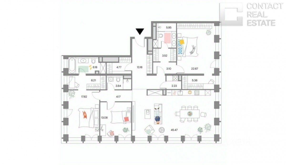 Одно из лучших предложений Москвы !!! Современные видовые апартаменты в новом комплексе премиум-класса Sky View, расположенном в самом центре Пресни-района с богатым историческим и культурным наследием. Планировка: гостиная, кухня , четыре изолированные спальни (две из них мастер - спальни с гардеробом и санузлом), помещение свободного назначения (кабинет или столовая), три гардероба (один с окном), гостевой санузел и раздельный санузел, прихожая. Много окон, все панорамные, есть французские балконы. Апартаменты в бетоне, при желании можно заказать у застройщика один из 4 возможных вариантов отделки: Organic, Modernism, Art Deco, Palladian Окна ориентированы на 2 стороны света: юг и запад. Высота потолка 3.3 м. Из окон открываются прекрасные виды в сторону Москва-сити и гостиницу Украина. К Вашим услугам салон красоты и полноценный премиум спа-комплекс, лучшие московские ресто-раны и настоящие кинозалы, здесь созданы идеальные условия для жизни роскошной и комфортной, насыщенной и безмятежной включенной в столичный ритм и избавленной от суеты. На нижних этажах разместились премиальный фитнес-клуб с самым современным тренажерным залом, 25-метровым бассейном с 4 дорожками, русской и турецкой парными, сауной, студиями йоги, балета, пилатеса и сайкла. Собственная развитая инфраструктура: З-уровневый подземный паркинг с автомойкой, ресторанная галерея. На стилобате, который объединяет башни комплекса, устроены детская и спортивная площадки, приватный парк для жителей комплекса. Высокий уровень безопасности. Огороженная охраняемая территория. Круглосуточный консьерж-сервис. В квартире выполнена стяжка пола, установлены межкомнатные перегородки. Один взрослый собственник, ДДУ 2022 года, свободная продажа. В шаговой доступности много сетевых продуктовых магазинов, детские, взрослые и частные поликлиники, школа 1520, 1234, МЭШ, МГК им. Чайковского, Научно-композиторский факультет, МГЮА им. Кутафина. Пекарни, кофейни, фастфуд , пиццерия, рестораны, салоны красоты, пункты выдачи маркетплейсов. Собственный приватный внутренний парк, в окружении парки ''Красная Пресня'', ''Красногвардейские пруды'', парк Декабрьского восстания и Пресненский детский парк.