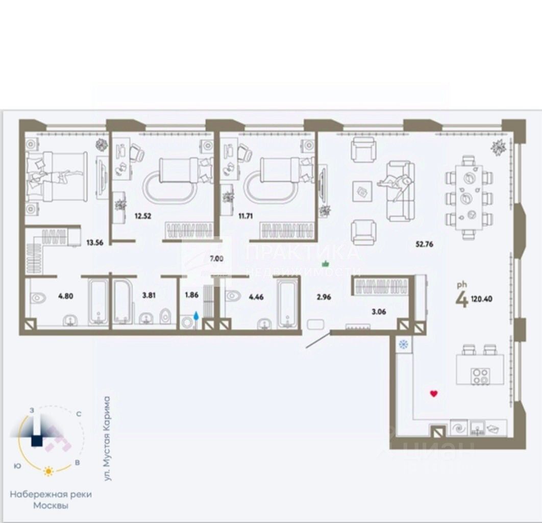 Код объекта: 1715792. Продается уникальная 4-комнатная квартира с ВИДОМ НА МОСКВУ-РЕКУ в престижном Даниловском районе Москвы. Квартира в монолитной новостройке 2024 года в ЖК бизнес-класса WOW, расположена на 12 этаже малоэтажного корпуса, обладает общей площадью 120,4 кв. м, из которых 76,55 кв. м — жилая. Высота потолков в 3 метра создают дополнительное ощущение простора. Панорамные окна выходят на на две стороны, в том числе на реку. Удобная планировка включает 3 изолированные комнаты с площадями 13,56+12,52+11,71 кв.м (одна из которых мастер-спальня с собственным санузлом и гадеробной) и огромную кухню-гостиную площадью 52,76 кв. м, что идеально подойдёт для большой семьи. 3 санузла обеспечивают удобство для всех жильцов. Планировочным решением предусмотрена постирочная и две гардеробных комнаты. Квартира продается без ремонта и мебели, что дает возможность воплотить любые дизайнерские решения. Квартира находится в доме с подземным паркингом, в который можно спуститься на лифте, и огороженной территорией с видеонаблюдением, что гарантирует безопасность и удобство. Также имеются гостевые парковки. Подъезд уровня бизнес-класса с красивым интерьером, видеодомофоном, колясочными, лапомойками. В соседнем корпусе располагается Гранд-лобби с консьержем, коворкингом, уютным кафе, камином, комнатой для посылок. Малоэтажный жилой комплекс WOW имеет свою закрытую охраняемую территорию, ухоженные зеленые зоны с ландшафтным дизайном, детские спортивные площадки и зоны для отдыха с арт-объектами, а также специальное пространство для занятий йогой с садом камней. ЖК находится в уединённом месте Нагатинской поймы на берегу Москвы-реки, недалеко от делового центра столицы. Благодаря уникальным качествам проекта каждый человек найдёт в нём идеальный баланс между работой, отдыхом и бытом. В 11 минутах ходьбы от комплекса расположен станция метро ''Технопарк'', а путь до центра займёт всего 20 минут. На машине легко добраться до проспекта Андропова или третьего транспортного кольца. В 22 минутах — ''Москва-Сити''. В районе вся инфраструктура прекрасно развита. Рядом есть все необходимое для комфортной жизни: 5 школ, 6 детских садов, 6 медцентров, детская и взрослая поликлиники, новые спортивные и детские площадки, кафе, рестораны, аптеки, супермаркеты, салоны красоты, пункты выдачи маркетплейсов, банки, ЦСКА Арена, парк развлечений ''Остров мечты'', причал Южного речного вокзала, Северный и Южный ландшафтные парки, Парк культуры и отдыха Нагатинская пойма, набережная для прогулок пешком и на велосипедах. Один взрослый собственник, без долгов и обременений. Свободная продажа. Быстрый выход на сделку. Мы гарантируем безопасную сделку и юридическую поддержку нашим клиентам. - Выдача правового сертификата от компании МИЭЛЬ, - Помощь и преференции в получении ипотеки (от 13,4 - 14,99%), - Все сделки застрахованы, финансовая гарантия. Не упустите свой шанс стать обладателем этой уникальной квартиры! ЗВОНИТЕ ПРЯМО СЕЙЧАС И ЗАПИСЫВАЙТЕСЬ НА ПРОСМОТР!!!