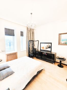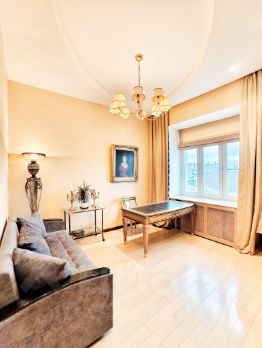 Роскошная четырехкомнатная квартира в самом сердце исторического района Замоскворечья на Большой Ордынке. Удобная планировка включает холл, просторную гостиную площадью более 50 кв.м с действующим дровяным камином, кухню-столовую, две уютные спальни и рабочий кабинет, который можно легко переоборудовать в третью спальню. В квартире также есть ванная комната и кладовая.Ремонт выполнен по индивидуальному проекту немецкого бюро Truggelmann, что гарантирует высокое качество и стиль. Все коммуникации, включая трубы и проводку, выполнены из меди, что обеспечивает долговечность и надежность. В отделке стен использованы натуральный шелк и дерево, а некоторые элементы интерьера украшены сусальным золотом, придавая помещению особую элегантность.Кухня оснащена техникой премиум-класса Miele, что порадует даже самых взыскательных кулинаров. Окна квартиры ориентированы на две стороны: из кабинета и гостиной открываются живописные виды на Старую Ордынку, а из спален и кухни — на тихий внутренний двор, создавая атмосферу уюта и спокойствия. Для удобства жильцов предусмотрена наземная парковка во дворе за шлагбаумом.541700
