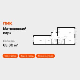 Продаётся 2-комн. квартира площадью 63,3 кв.м на 4 этаже 17 этажного дома (Корпус 1.4, Секция 4) проекта ПИК Матвеевский парк. Светлый просторный подъезд на уровне земли, функциональная планировка, большие окна, c отделкой. ''Матвеевский парк'' — проект ''Серии плюс'', расположенный на западе Москвы, в районе Очаково-Матвеевское. Ближайшая станция метро ''Аминьевская'' находится всего в 3 минутах пешком, а в 20 минутах — МЦД-4 ''Очаково''. Проект входит в состав Матвеевского кластера — современного района, где есть всё необходимое для комфортной жизни: социальная инфраструктура, парки и общественные пространства.Проект расположен в Матвеевском кластере — новом современном районе, который будет состоять из четырёх кварталов: ''Матвеевский парк'', ''Новое Очаково'', ''Большая Очаковская 2'' и Vangarden. Перемещаться между кварталами будет удобно по 350-метровому пешеходному мосту, под которым появится уютный зелёный парк.У проектов будет общая инфраструктура и благоустроенная территория. Уже открыта часть пешеходного бульвара, который строится по проекту британского бюро Gillespies. Здесь можно гулять после работы, играть с детьми, заниматься спортом и отдыхать у сухого фонтана с ночной подсветкой. В будущем в кластере появится пешеходный мост, который соединит жилые кварталы, и комьюнити-центр ''ОМА'' с магазинами, кафе, местами для спорта, встреч и общения.Отдыхать и заряжаться адреналином жители кластера смогут в SportHub Extreme — зоне площадью более 3 500 м², рассчитанной на любителей экстремальных видов спорта. Здесь будут площадки для безопасного катания на скейтбордах, роликах, самокатах и велосипедах. Для командных игр — например, мини-футбола и стритбола — появится отдельная универсальная площадка с покрытием из резины.Помимо этого, на территории ''Матвеевского кластера'' начнут работу пять новых школ, шесть детских садов, поликлиника и многофункциональный спортивный комплекс.Архитектурную концепцию корпусов 4 квартала разработало российское бюро KATARSIS. Акцентные белые корпуса с большими окнами делают архитектуру проекта мощной и запоминающейся. А фоновые части зданий придают образу размеренность и спокойствие.В лобби ''Матвеевского парка'' будет удобная зона ожидания, где можно встретить друзей, курьера или дождаться такси, а также гостевая туалетная комната и колясочная. Артикул 747514 (Застройщик ООО ''СПЕЦИАЛИЗИРОВАННЫЙ ЗАСТРОЙЩИК ''ЦЕНТРПОЛИС'')