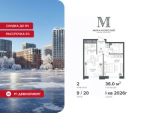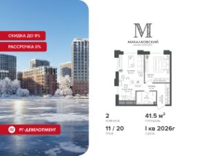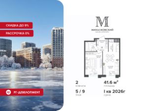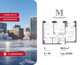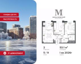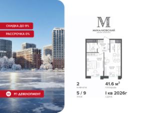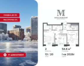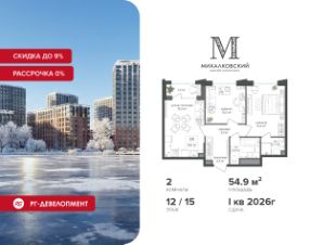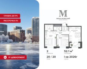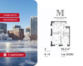 Новогодняя скидка 9% при покупке квартиры! Цена указана с учетом максимального размера скидки. Продаётся 2-к квартира 52,2 кв.м. в ЖК ''Михалковский'' на 9-м этаже 9 этажного дома.Компания ''РГ-Девелопмент'' предоставляет новогоднюю скидку на квартиры в жилом комплексе. Акция действительна с 12.09.2024 по 15.01.2026 включительно. Чтобы воспользоваться предложением, необходимо подписать договор на приобретение недвижимости до 15.01.2026 включительно.Действует программа ''Растет семья - растет и квартира''.Прямая продажа от застройщика!Старт продаж новых корпусов.Квартиры без отделки.Срок сдачи 1 кв. 2026 г.Особенности проекта:Завораживающие видыКрасивое благоустройствоУникальная локация для Москвы (рядом Головинский парк, пруды, усадьба Михалково)Рядом с центромВ проекте присутствует: архитектура голландского бюро MLA+, зеленые зоны, транспортная доступность, благоустроенная территория, подземный паркинг, детский сад и выход на Головинский парк с пятью прудами. Название комплекса указывает на одну из его черт - соседство с имением Михалково. Позвольте себе жить в месте, где проводили свой досуг династии Дашковых и Паниных.