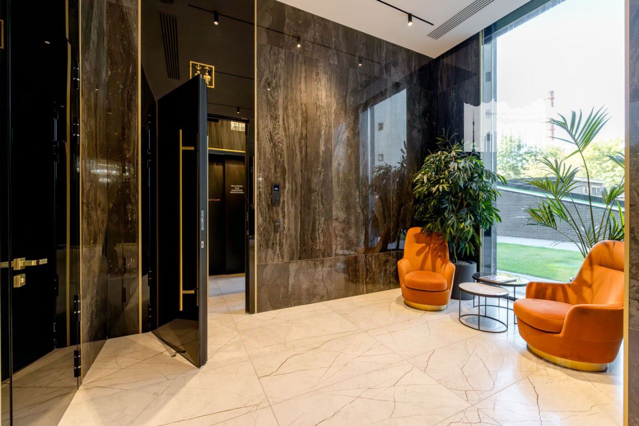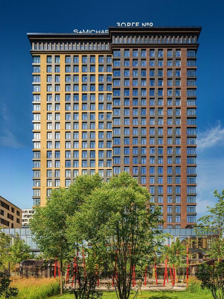 ''Зорге 9'' — готовые апартаменты бизнес-класса на Ходынке. 10 минут до Москва-Сити. Архитектура: 3 современных корпуса с фасадами в стиле архитектуры Нью-Йорка и с сервисами премиальных отелей, высотой до 23 этажа. Строгие линии, панорамные окна создают ощущение неподдельной роскоши и комфортной жизни в сердце мегаполиса. Проект награжден авторитетной премией European Property Awards. Резиденции: Свободная планировка, небольшая глубина этажа, огромные панорамные окна в пол до 3,6 м и высота потолков до от 3,3 до 4,3 м позволяют реализовать самые смелые концептуальные идеи и создать идеальный интерьер с учетом всех пожеланий. Вдохновляющие виды на город украсят ваш апартамент лучше любой картины. Есть возможность приобретения дизайн-проекта и полной меблировки апартаментов от партнеров девелопера. Расположение: 3 мин. пешком до парка Березовая роща 10 мин. пешком до Ходынского поля 10 мин. до ТЦ Авиапарк 30 минут до Шереметьево 10 мин до Москва-Сити или 1 станция до Москва-Сити 5 минут до ТТК 4 станции метро в шаговой доступности: 6 мин м. Полежаевская (фиолетовая ветка) 7 мин МЦК Зорге (МЦК) 7 мин м. Хорошевская (голубая ветка) 10 мин МЦК Хорошёво (МЦК) Благоустройство: Собственный парк 2 га с амфитеатром и поющими фонтанами. В парке высажено 136 деревьев и более 11 000 кустов и мелких растений из немецких питомников. Площадка для йоги и воркаут-зона со спортивными площадками. Теннисные столы и детский плейхаб Две башни Авторское гранд-лобби В лобби предусмотрена лаундж-зона, чайная с камином, комната для хранения велосипедов и колясок. Доступ по системе FACE ID. В отделке лобби и лифтовых холлов использован декоративный камень итальянского бренда Atlas Concorde Пентхаусы На верхнем уровне комплекса расположены роскошные просторные пентхаусы с высотой потолка до 4,2 метра и панорамными окнами до 3,6 метров, открывающими великолепные виды на столицу. Пентхаусы с выходами на собственные приватные террасы на кровле, площадью от 150 кв. м являются жильем high-уровня, демонстрирующим высокий статус владельца.