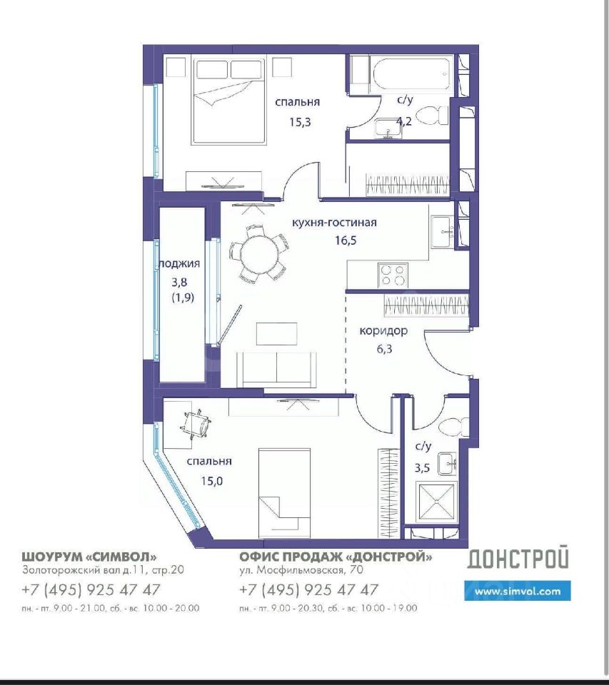 Номер в базе: 11780772. Предлагаем уютную двухкомнатную квартиру в ЖК Символ, премиальный квартал ''Искренность''. Квартира с большой кухней гостиной, просторной лоджией, мастер спальней со своим санузлом, еще одной спальней, вторым совмещеным санузлом и с прекрасными видами в тихий зеленый двор. Квартира без отделки, что дает возможность осуществить Ваши мечты. Высота потолков: 3,1 метра — создайте ощущение простора и света! Подземный паркинг с автомойкой, кладовые помещения и консьерж-сервис. Просторная входная группа с комфортными лобби, где приятно дожидаться гостей, также, в корпусе имеется игровая детская комната, колясочная, приватный детский двор и лапомойки. Уникальная территория ЖК имеет собственный парк ''Зеленая река'' протяженностью 2 км с беговыми и велодорожками, детскими и спортивными площадками. Внутри комплекса расположены детские сады, лицей им. Баумана, фитнес-клуб с бассейном 50 метров. Инфраструктура формата комплекса ''город в городе'' - с ресторанами, фитнесом, салонами красоты, медцентрами, магазинами, пунктами доставки. Пешая доступность до станций метро ''Площадь Ильича'' / ''Римская'', станции МЦД 2 ''Москва Товарная'' и платформы ''Серп и Молот'' Горьковской железной дороги. Прямой выезд на ТТК, а также на Садовое кольцо через Николоямскую улицу. Один взрослый собственник. Без обременений. Свободная продажа. Код пользователя: 52658