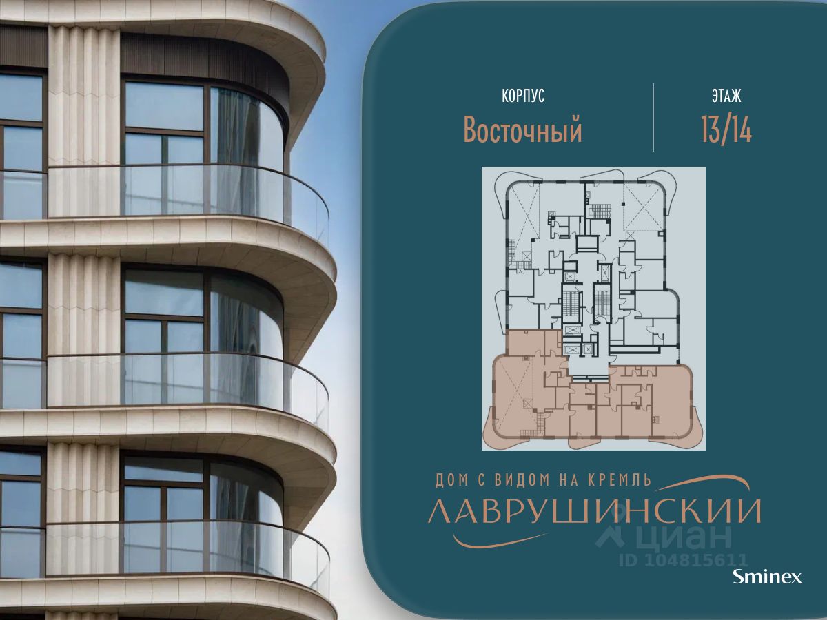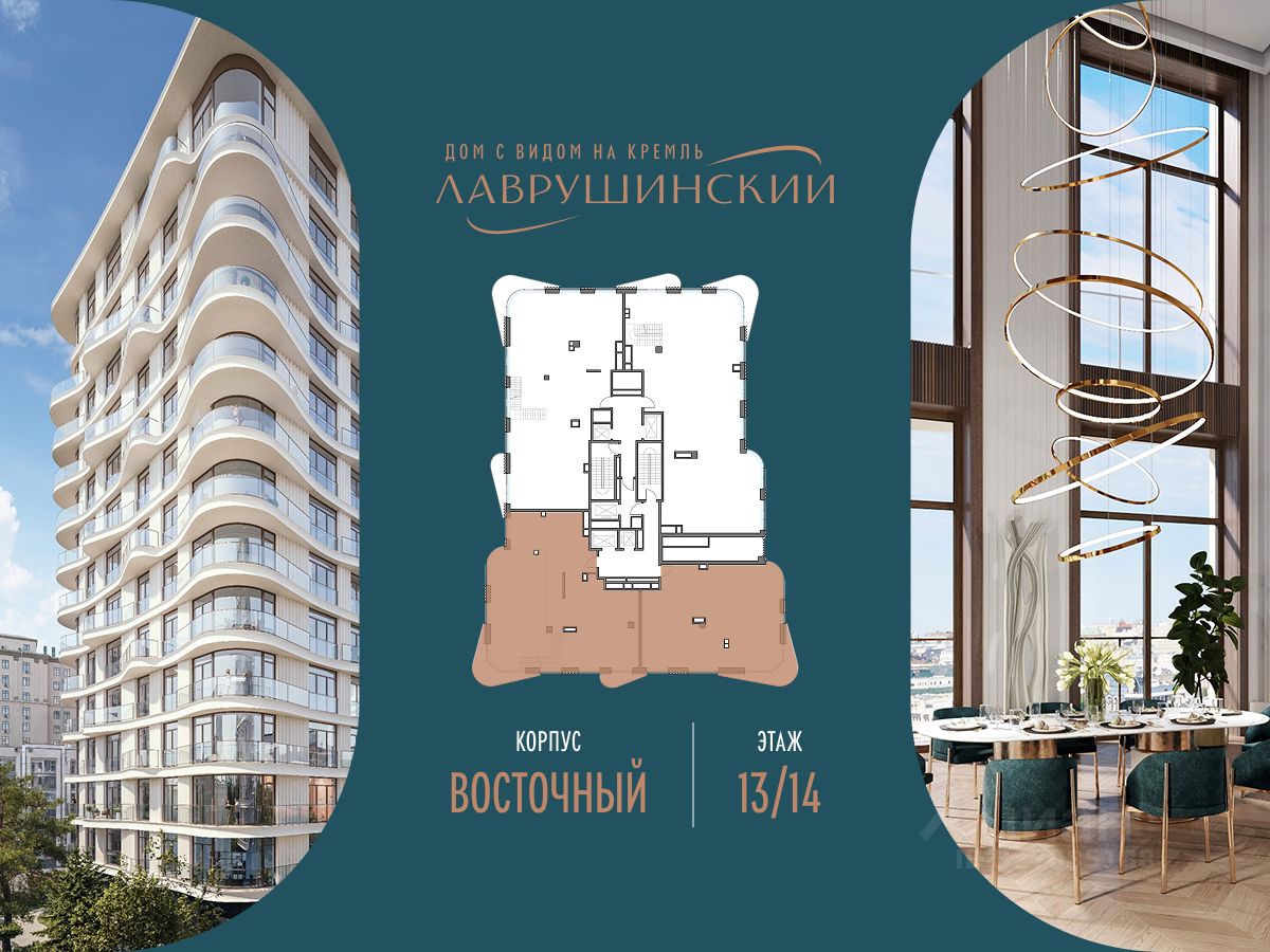 ''Лаврушинский'' - бескомпромиссный дом с лучшими видами на Кремль. Благодаря расположению всего в одном километре от Кремля, своей высоте и малоэтажной окружающей застройке, из квартир открываются поразительные прямые виды на главные достопримечательности центра Москвы, включая храм Христа Спасителя и собор Василия Блаженного. Расположение в глубине квартала, посередине парка, дает удивительное для центра ощущение тишины и простора. На закрытой территории находится самый большой на элитном рынке собственный ландшафтный парк площадью 1,4 га с фонтаном, ручьём, зонами для воркаута и тихого отдыха. KIDS LAB: развивающая детская площадка на улице и игровая комната в помещении. FIT LAB: фитнес-клуб с 25-метровым бассейном, beauty room, доступные только для жителей. В проекте уникальный выбор квартир с просторными балконами, пентхаусов с террасами, бассейнами и каминами, максимальными видовыми характеристиками, а также роскошных вилл. Всего - 153 квартиры и 101 продуманное планировочное решение. Высота потолков составляет от 3,5 до 8,25 м. В доме предусмотрен 2х-уровневый паркинг на 279 машино-места. В доме предусмотрен полный комплекс систем комфорта, включающий приточно-вытяжную вентиляцию с тонкой фильтрацией с принципом забора воздуха с высоты 50 метров для повышения продолжительности жизни, отдельный сервисный лифт для обслуживающего персонала и другие современные системы.