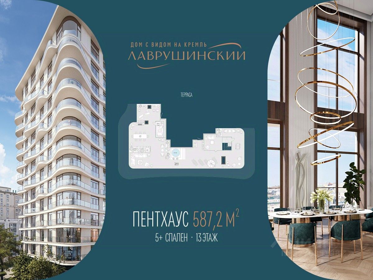 Беспрецедентно просторный двухэтажный пентхаус со вторым светом и высотой потолков до 7,9 м, общей площадью 587,2 м², расположен в восточном корпусе дома ''Лаврушинский''. Коллекционный формат: в доме представлен всего один пентхаус с таким пространством. Моллированные окна охватывают значительную часть восточного корпуса, формируют эффект непрерывной панорамы с прямыми видами на Замоскворечье, Марфо-Марьинскую обитель и весь исторический центр Москвы. • Двухэтажная планировка • Площадь пентхауса - 587,2 м² • Площадь террасы - 260,4 м² • Второй свет: высота потолков - 7,9 м² • Возможность размещения до десяти спален • Кухня-гостиная с дровяным камином О пентхаусе в доме ''Лаврушинский'' Пространство пентхауса выстроено так, чтобы естественно подстраиваться под ваш ритм жизни. Планировка позволяет гибко организовать жилые сценарии и спланировать индивидуальные гардеробные и ванные комнаты для спален, сохраняя комфорт и приватность. В гостиной можно установить дровяной камин, создающий уютную атмосферу загородного пространства. Просторные террасы пентхаусов дарят ощущение полёта над городом. Они созданы, чтобы встречать здесь рассветы, устраивать тихие ужины или яркие вечеринки с потрясающими видами. Здесь хватит места для барбекю, летней кухни, уютной зоны отдыха, занятий спортом на открытом воздухе или собственного сада. Вы можете разместить на террасе хот-таб - собственное спа под открытым небом, чтобы расслабиться после деловой встречи или тренировки, полюбоваться рассветом и устроить свидание с видом на город. Жителям доступна вся инфраструктура и премиальные сервисы дома ''Лаврушинский'', включая Clubhouse: фитнес с 25-метровым бассейном и спа, пространства для отдыха и продуманную детскую инфраструктуру, в одном километре от Кремля, в глубине собственного двора-парка площадью 1,4 гектара. Пространство для жизни без компромиссов и ограничений - с общей площадью 848 м², включая террасу. Девелопер проекта Sminex - лидер на рынке премиальных и элитных домов Москвы. С 2001 года построили более 100 проектов площадью 12 млн м² - покупатели выбирают у нас каждую третью квартиру в этом сегменте.