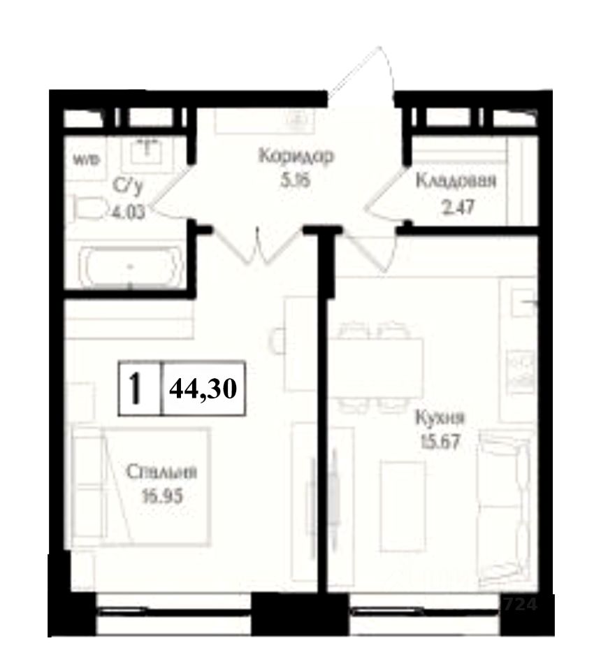 44 м² · Этаж 8 из 17