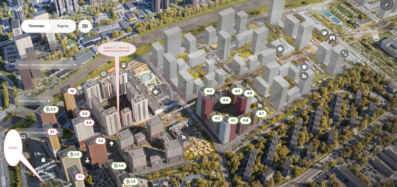 id:21098. Вашему вниманию предлагается новая 3х комнатная квартира общей площадью 68.6 м2 в 13 корпусе в жилом комплексе West Garden. Квартира имеет функциональное зонирование пространства, а именно: совмещенная зона гостиной кухни 22,2 м2, детская спальня/кабинет 12.5 м2, мастер спальня 17 м со своей гардеробной, совмещенный сан/узел 6.1 м2, постирочная зона 3 м2, большая зона прихожей 8,5 м2 Квартира продается в состоянии под ключ со всей мебелью и техникой. ПРЕИМУЩЕСТВА КВАРТИРЫ: 1) Большие и широкие окна и тихие видовые характеристики. Окна ориентированы во внутренний двор. 2) Абсолютная тишина за счет расположения корпуса 3) Функциональное планировочное решение. 4) Абсолютно новый ремонт, никто не жил. 5) Отдельное внимание уделено местам хранения. WEST GARDEN - это собрание клубных домов высотой 12-14 этажей в собственном парке 16 гектаров вдоль реки. Вокруг премиальное окружение и более 1000 гектаров парков. Современная лаконичная архитектура, у каждого дома свой индивидуальный облик и выразительный фасад с использованием натуральных и долговечных материалов (гранит, известняк, клинкерный кирпич) Функциональные лобби с отделкой из дерева и натурального камня с высокими потолками до 7,8 м Самый большой двор-парк для прогулок и отдыха: 8 га собственной закрытой и благоустроенной территории, а также 8 га прилегающего парка на набережной с зонами отдыха с шезлонгами, маршрутами для бега, пеших и велосипедных прогулок Инфраструктурный центр Clubhouse только для жителей: соседский центр с террасой и творческой атмосферой по фирменному стандарту Friend's Lab, детская игровая зона 350 кв. м по стандарту Kid's Lab Насыщенная и разнообразная инфраструктура для детей любого возраста: 8 развивающих детских площадок в парке, 3 детские площадки на благоустроенной набережной, площадка для отдыха и досуга подростков Спортивная инфраструктура по стандарту Fit Lab: многофункциональные площадки для футбола, баскетбола, волейбола с трибуной для болельщиков, зона воркаута, теннисные столы, зона для йоги, беговая дорожка 3 километра, фитнес-центр только для жителей Комфортный и просторный подземный паркинг на 1313 машино-мест, 482 келлера, автомойка только для жителей на четыре поста