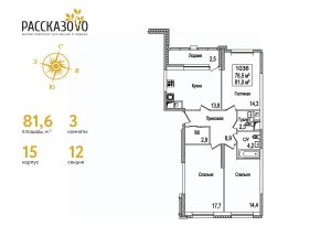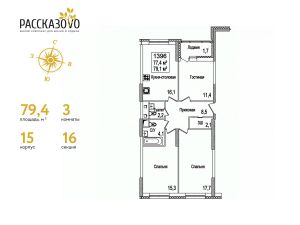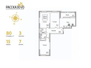 Продается 3-комнатная квартира в ЖК Рассказово на 9 этаже. Общая площадь квартиры составляет 79,6 кв.м. Квартира без отделки.Уникальность комплекса в его архитектуре все дома построены в стиле Москвы 30-х годов, создавая неповторимое ощущение присутствия романтики того времени.Роскошные входные группы, отделанные мрамором, с высотой потолков 4,5 м, белыми лепными карнизами и стойкой ресепшн с авторской отделкой создают атмосферу уюта, полностью отражая дух и воплощение уникальной архитектурной концепции 30-40 годов, являясь ее логическим продолжением.Преимущество локации заключается в благоприятной экологической обстановке с трех сторон комплекс окружен Ульяновским лесопарком и отсутствием промышленных предприятий, обеспечивая жителей чистым воздухом. До ближайшей станции метро ''Рассказовка'' всего 850 метров, а до центра можно доехать за 30 минут.Проект предполагает комплексное освоение территории, создание комфортной жилой застройки с развитой качественной инфраструктурой:- большое количество парковочных мест предусмотрены как закрытые подземные паркинги, так и крытые наземные парковки с дополнительно выделенными открытыми парковочными местами возле домов,- круглосуточно охраняемая территория, закрытая от посторонних для безопасности каждого жителя,- двор-парк без машин, где можно не переживать за играющих детей,- социальные объекты: своя поликлиника, детские сады и школы,- здоровая среда: воркаут - площадки, обустроенные места для занятий спортом на свежем воздухе, живописные места для утренних пробежек, велосипедные маршруты любой сложности,- благоустроенная набережная лесного озера для тихих прогулок или семейного отдыха,- коммерческие объекты действующие магазины, кафе и салоны красоты.Узнайте больше о комплексе приезжайте на просмотр, записавшись по телефону. Менеджер вас встретит, угостит вкусным кофе, проведет по территории и покажет квартиру.